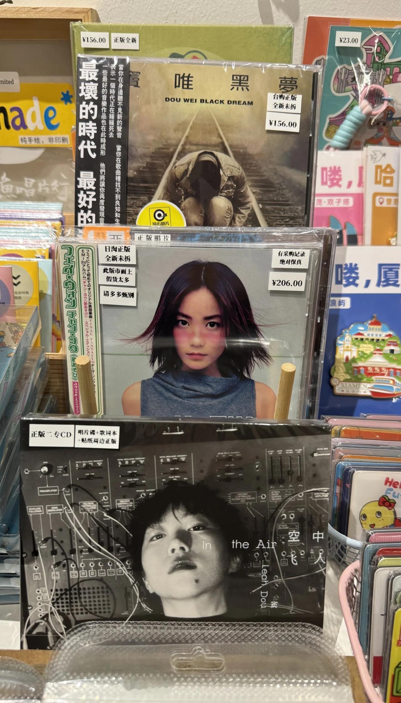 一家三口整整齐齐 先是看到了菲皇的专辑,接着往下看到童童,开玩笑说这母女俩都在啊,要是还有窦唯就齐了,结果往上一翻,果然!老板的小心思哈哈哈哈哈哈哈!王菲 窦靖童 窦唯 专辑 CD