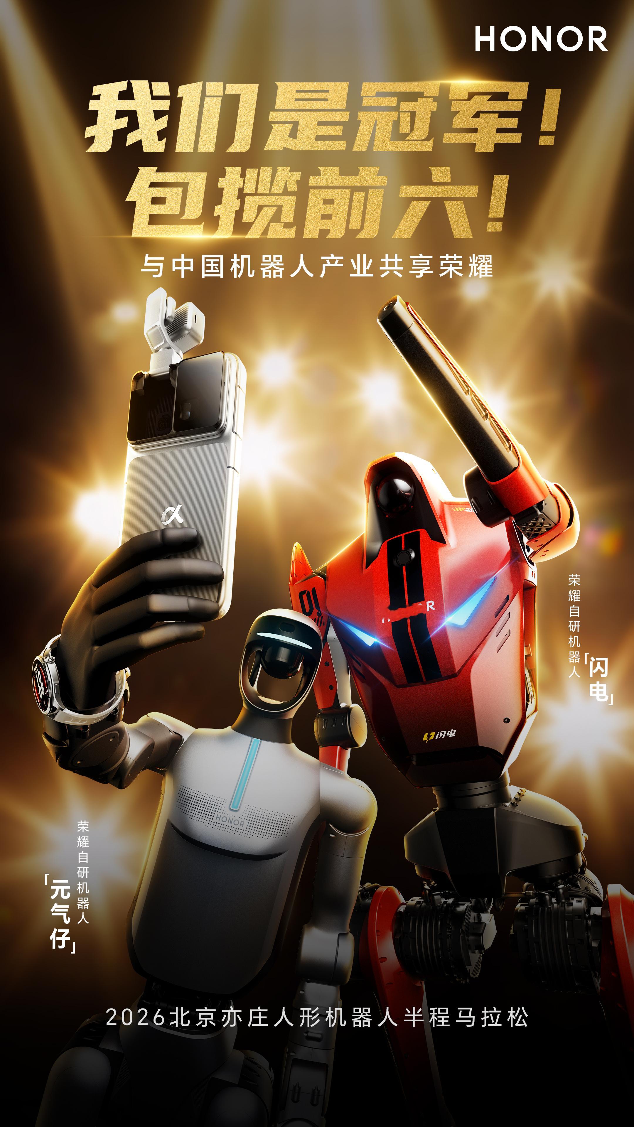 包揽前六!太强了!机器人半马冠军出自荣耀荣耀机器人在2026北京亦庄人形机器人半程马拉松上,不仅以50分26秒成绩问鼎,更是包揽前六,这场半程马拉松感觉不是比赛,是荣耀机器人的秀场啊,这分明就是一家独秀啊! 西安