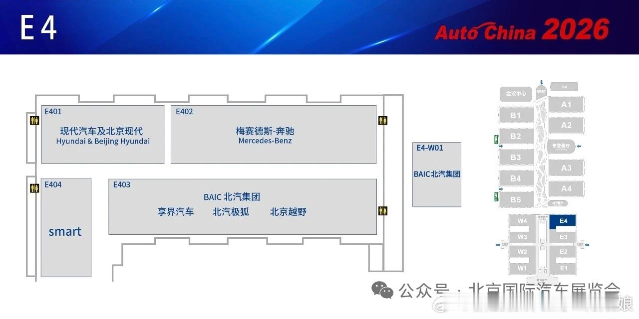 举办日期为4月24日至5月3日,展期共10天。其中4月24、25日为展会新闻日,专门接待海内外新闻媒体记者到场参观采访报道。4月26日-27日为专业观众日;4月28日-5月3日为公众日。专业观众日和公众日参观时间为10:00-18:00。 2026北京车展展车总数1451台,包含首发车181台,概念车71台。 几个包馆的品牌如下: