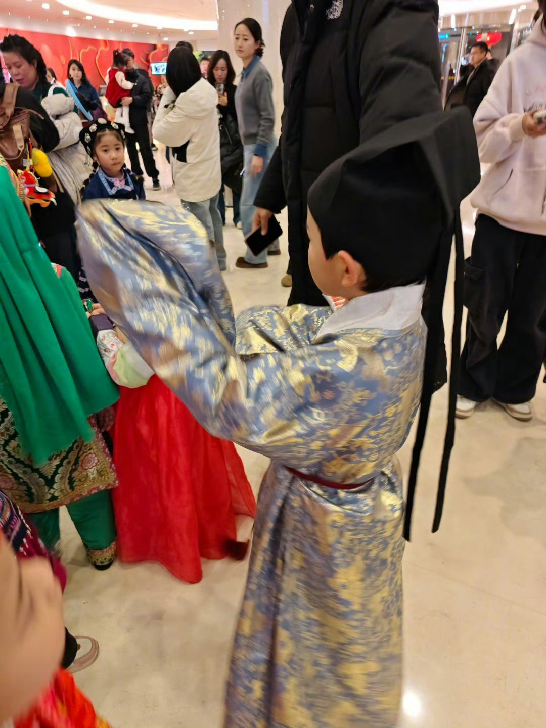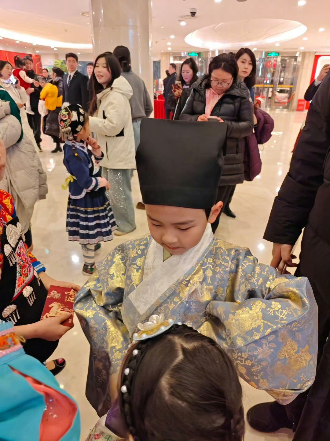 秦岭笑谈被900岁古画穿搭惊艳到了汉服之美,穿越历史,历久弥新,引领潮流。为春晚汉族小朋友设计的汉服点赞。春晚设计师出手设计黄衣服扬眉老师选取的设计方案是绵羊太子阳生纹织金交领道袍,大吉葫芦吉庆有余纹缎护领,大红丝绦,是明代汉族上下老幼通用的传统节庆吉服样式,三阳开泰、福禄吉祥,尽显华夏衣冠雅致风骨。