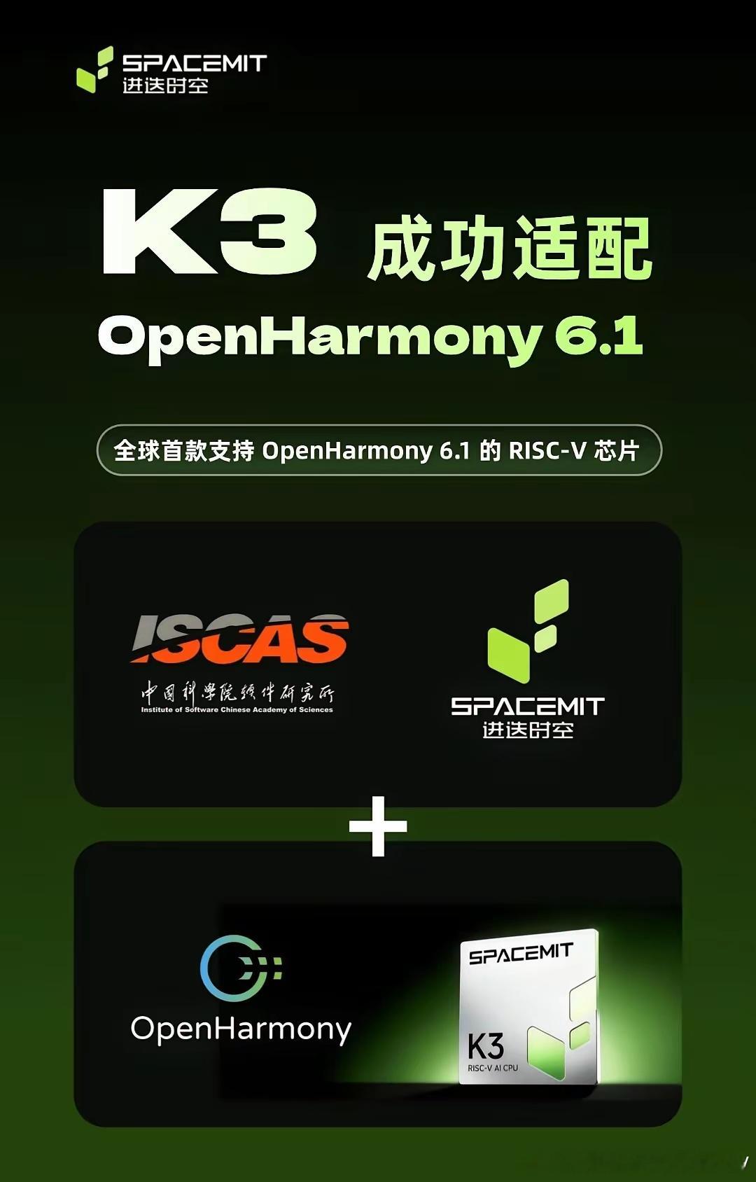 进迭时空×中国科学院软件研究所达成重要技术突破!RISC-V AI CPU 芯片 K3,成功运行 OpenHarmony 6.1 系统,成为全球首款支持 OpenHarmony 6.1 版本的 RISC-V 架构芯片!