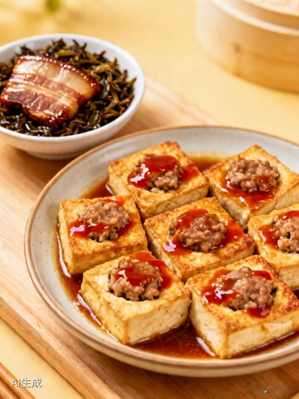 早上出门买了新鲜的五花肉和豆腐,回来做了心心念念的酿豆腐。 调好的肉馅塞得满满当当,煎到两面金黄,再浇上酱汁焖一会儿,咬一口全是肉香,汤汁都要飙出来! 还顺手炖了一锅梅菜扣肉,五花肉炖得软乎乎的,肥而不腻,梅菜吸满了肉汁,配着米饭我直接干了两大碗。 虽然都是家常菜,但自己动手做的,吃起来就是格外香。 你们今天吃了啥好吃的?也来晒晒呀~