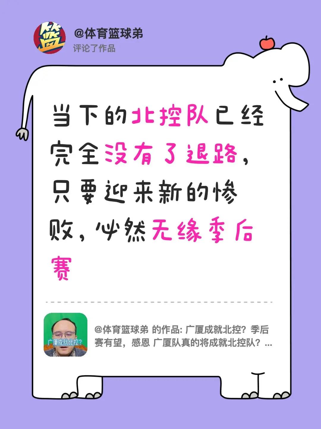 我评论了@体育篮球弟 的作品:当下的北控队已经完全没有了退路,只要迎来新的惨败,必然无缘季后赛