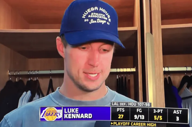 NBA季后赛,卢克-肯纳德谈今晚的胜利:“感觉很棒。拿下首胜、守住主场,完成了我们该做的事,这显然很重要。整体来说我觉得我们执行得很不错。当然,我们的两大关键问题还是前场篮板和失误,这两点我们做得不太好。但总的来说,还算不错。” 本场比赛,湖人球员卢克-肯纳德出战38分钟,13投9中,其中三分球5投5中,罚球6投4中,得到27分4篮板3助攻。