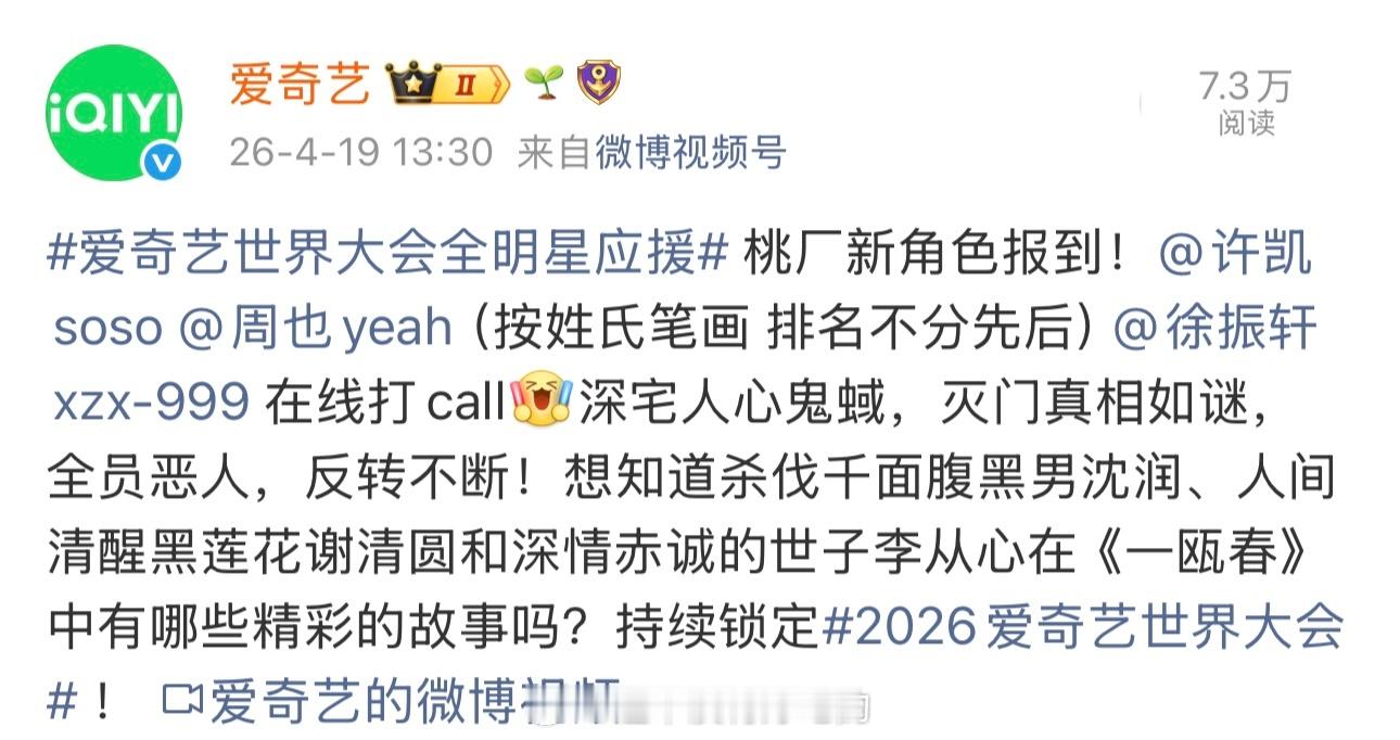 许凯、周也(按姓氏笔画 排名不分先后)《一瓯春》爱奇艺世界大会ID物料