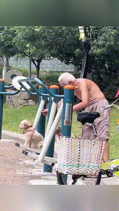 乖乖嘞!俺家爷爷那叫一个宠狗,天天骑着车带着俩狗子,风风火火往公园健身去! 到了健身器材这儿,爷爷也不嫌弃,直接把俩狗子往器材跟前儿放,锻炼的时候还带着它们。人家练啥,俩狗子就蹲旁边瞅,有时候还跟着爷爷晃悠,那小模样跟陪练似的,特别乖。 爷爷一边活动筋骨,一边逗逗狗子,主仆仨人在公园锻炼得热热闹闹,这日子过得真是得劲儿又暖心!狗