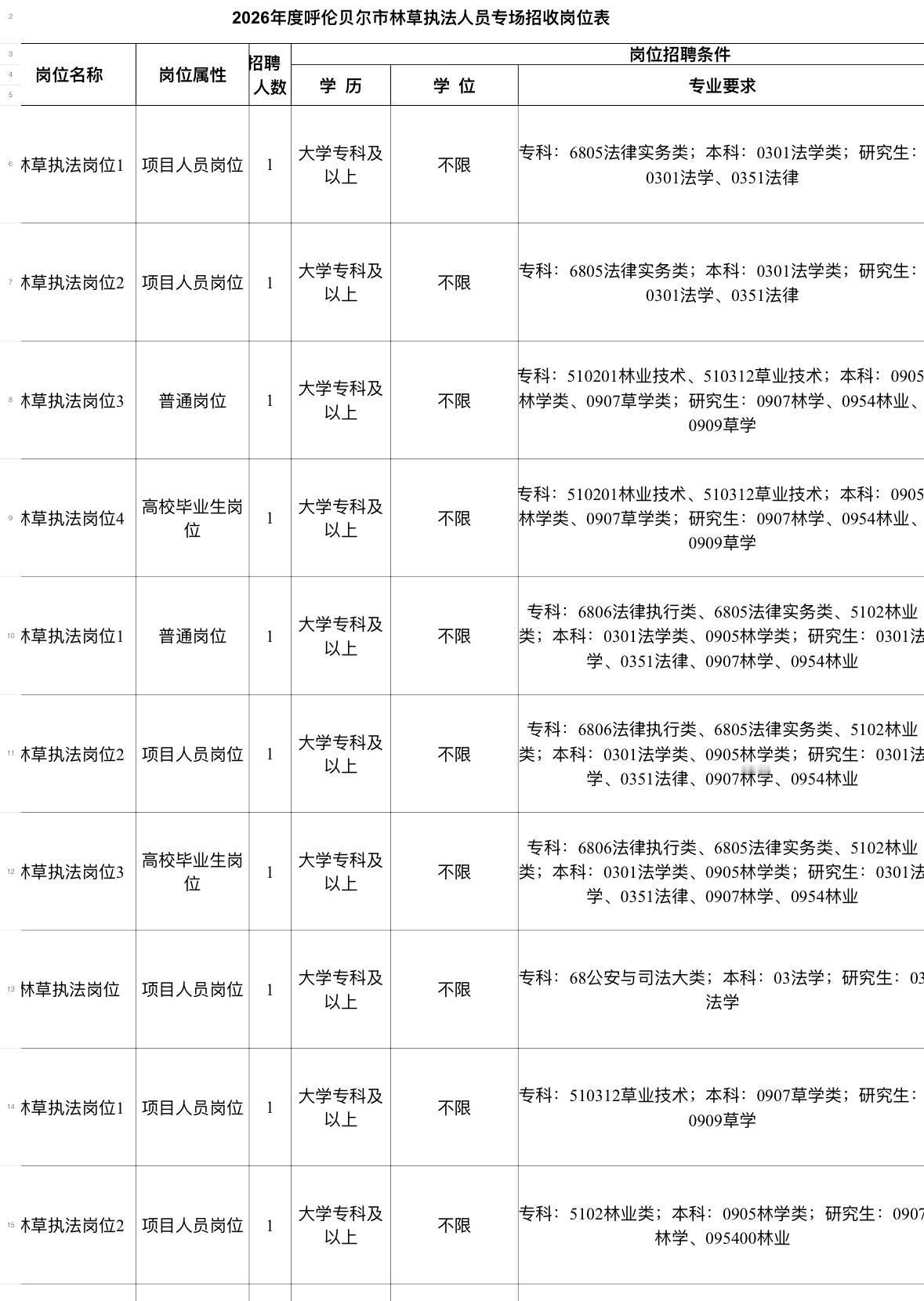 呼伦贝尔林草执法招35人!事业单位编制! 🌲单位名称: 呼伦贝尔市林草执法事业单位 ✨岗位亮点: 事业单位编制,35个名额,应往届均可报 📚招聘要求: 大专以上学历,年龄18-38周岁 💰薪资待遇: 4000-6000元(供参考) ⏰报名截止: 2026年4月20日 事业单位 内蒙古招聘 呼伦贝尔招聘 考编 应届生 往届生找工作 求职