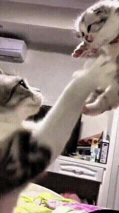 老铁们快看这一幕,给人整破防了!主人闲的没事,一把就把小猫给薅起来举老高,跟举个小玩具似的。 猫妈妈当场就急眼了,俩爪子跟装了弹簧似的,“啪”一下就把小猫给捞怀里,生怕娃摔个好歹的!抱怀里之后,也不管三七二十一,抱着小猫就一顿亲,左蹭右蹭,亲得那叫一个亲热,跟失而复得似的! 猫妈妈那小表情,又是后怕又是宠溺,看得人心里暖乎乎的。这猫妈妈也太爱娃了,妥妥的猫界“护崽狂魔”,谁看了不喊一声好妈妈!猫咪 搞笑 猫