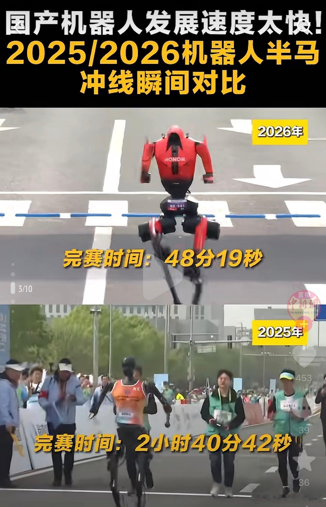 机器人马拉松大赛冠军这进步速度也太快了,一年就提升了3倍,已经超越人类最快速度,关键这次已经有自主识别跑步的机器人了,另外荣耀让人刮目相看呀,恭喜恭喜🎉