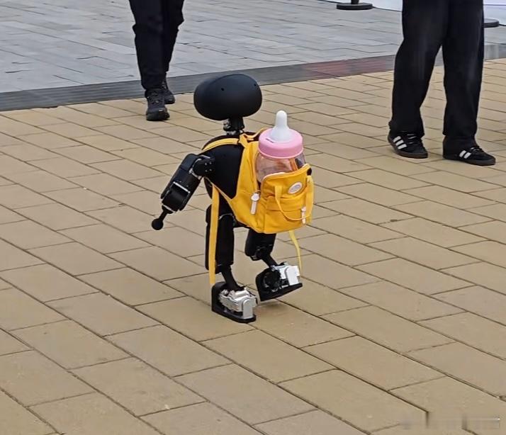 机器人都跑出残影了没断奶的机器人,禁止进入赛场,一个背着奶瓶,一个大头娃娃,干啥啊