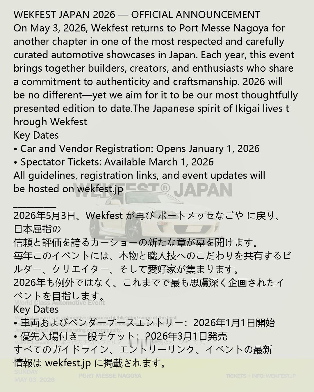 WekFestJapan2026 地点:日本·名古屋市国际展示场 日本风情画 展示时间:2026-05-03 改装车聚会 改装车展会 名古屋