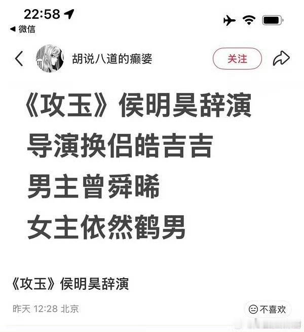侯明昊辞演攻玉曾舜晞接班男主女主还是鹤男