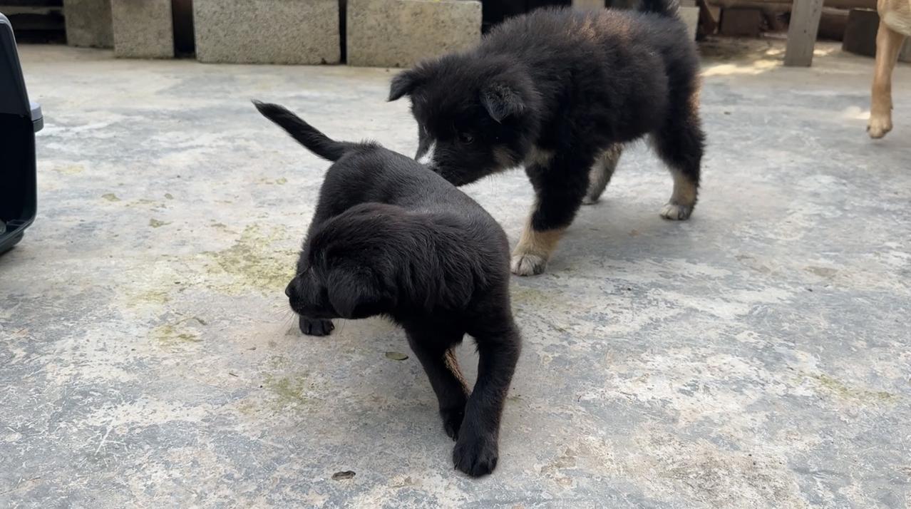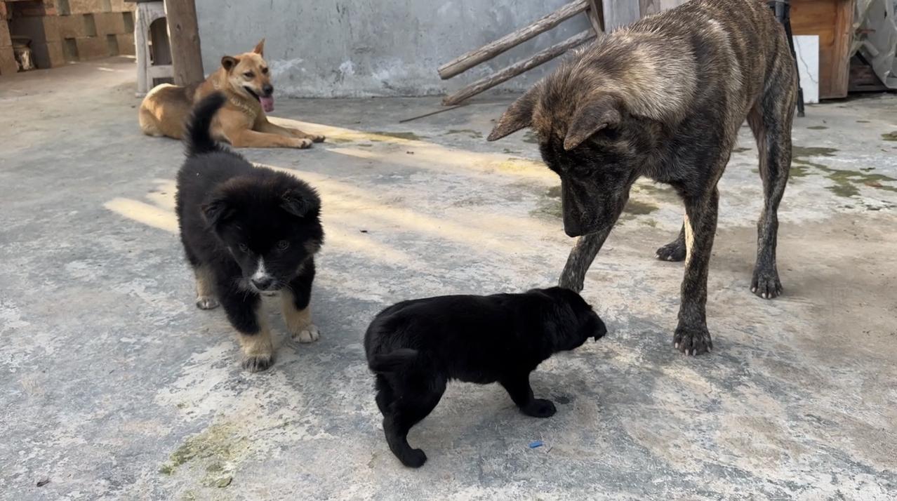 大家晚上好,不知什么原因,今晚视频审核没有通过,抖音那边通过了,可以正常收看。 视频内容是粉丝朋友送来了一只黑色的小狗,带回家后,大黄它们对新来的小狗都很友好,小狗也是自来熟,主动和大黄它们亲近。 商家说这只小狗能长到八十斤重,是狼青和五黑犬杂交的后代,战斗力强,而且护主,很适合看家护院,大家帮它取个好听的名字吧