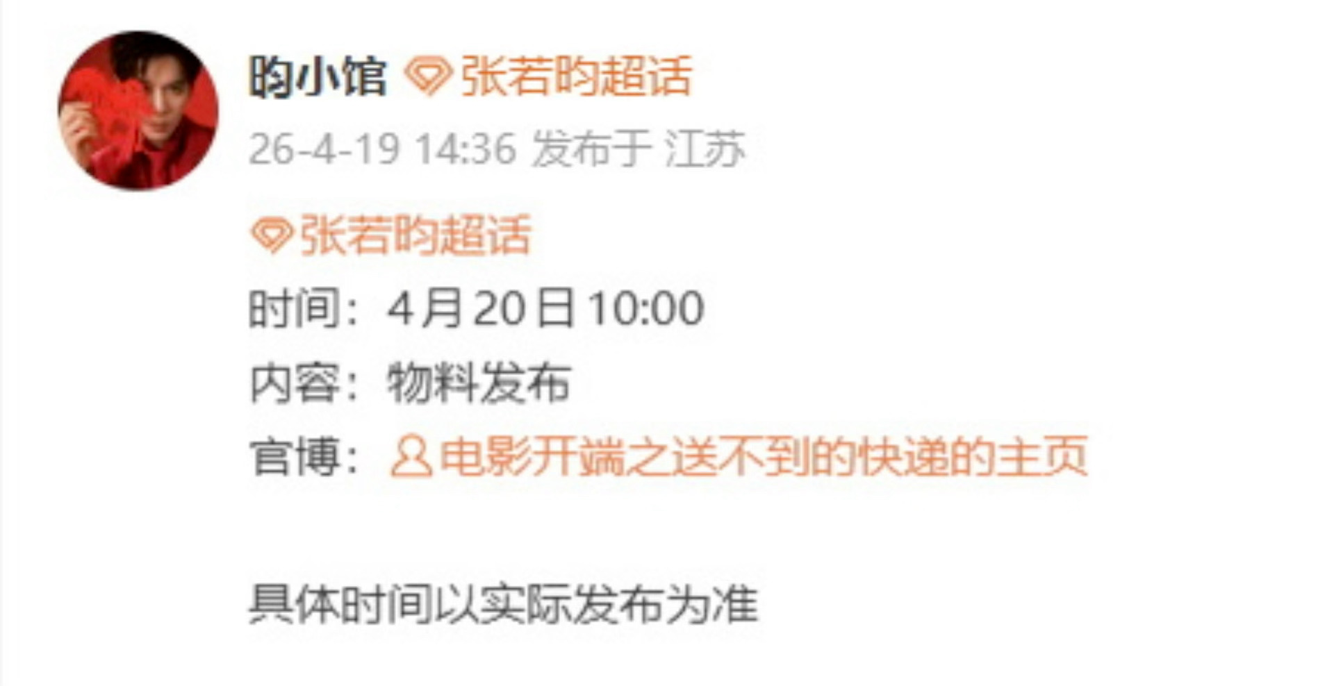张若昀电影开端官宣节奏 张若昀又有新电影要官宣了,就在明天!目前正在《千里江山图》的拍摄组里,新作品又续上➕1,演员张若昀请就按这个节奏一直进组吧!
