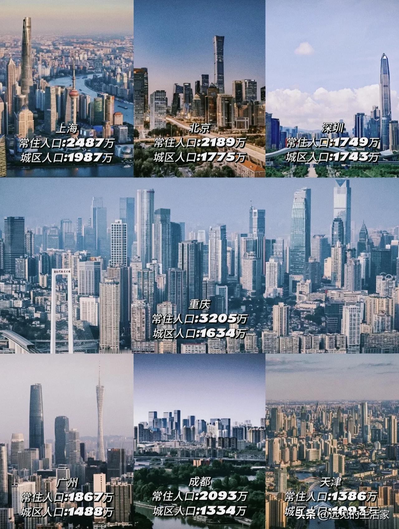 中国城市“梯队战”:谁是真·超大城市,谁被低估了?! 当我们谈论“大城市”时,很多人还停留在“北上广深”的旧印象里。但这两张图,把中国城市的“真实段位”摊开了。 先看最硬核的定义: 超大城市:城区常住人口≥1000万,图里是上海、北京、深圳、重庆、广州、成都、天津这7个。 特大城市:城区常住人口500万-1000万,武汉、东莞、西安、杭州等15个城市在列。 很多人看到重庆的数据会震惊:常住人口3205万,城区人口1634万,直接断层领先。但很少有人注意到,这里的“城区人口”才是核心指标——它剔除了下辖县、乡镇的人口,真正反映的是城市建成区里的人口规模,也是衡量一座城市“繁华程度”的硬通货。 - 上海常住人口2487万,城区人口1987万,是实打实的中国第一大城。 - 深圳常住人口1749万,城区人口1743万,几乎所有人口都挤在建成区里,密度恐怖。 - 成都常住人口2093万,城区人口1334万,硬生生靠人口规模挤进超大城市行列,成为西部的绝对中心。 🔄但比数据更有意思的,是这些城市的“江湖地位”变化: 1. 东莞、佛山的逆袭:很多人以为它们只是珠三角的“打工人工厂”,但东莞、佛山早已跻身特大城市行列。它们的城区人口,比不少省会城市还要高。 2. 天津的争议:天津的常住人口1386万,城区人口1093万,刚过超大城市线。很多人觉得它“存在感低”,但它的城市规模,依然稳压大部分省会。 3. 重庆的特殊性:很多人会说“重庆是省不是市”,但在官方定义里,重庆的“城区人口”是主城九区的真实数据,它的城市体量,确实是中国独一档的存在。 🔄很多人对城市的理解,还停留在GDP、高楼数量上。但“城区人口”这个指标,其实藏着城市最真实的吸引力。 - 为什么年轻人愿意挤破头去这些城市?因为它们提供了足够多的工作、教育、医疗资源,能承载千万级人口的生活需求。 - 为什么很多“强二线”城市挤不进这个名单?因为它们的人口很多分散在下辖的县、县级市,真正聚集在主城区的人口,还没达到门槛。 说到底,这些数字不只是冰冷的排名,更是千万人用脚投票的结果。 你所在的城市,在哪个梯队?你觉得未来还有哪些城市有机会冲超大城市?!