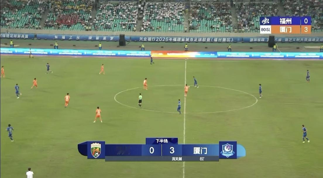 【我宣布,厦门暂时改名“”厦闫”,因为进了三个球了】 首届闽超揭幕战,厦门队客场挑战主场作战的福州队,现在比赛进行到第81分钟了,厦门队已经进了三个球了,3:0领先福州队。 我觉得,厦门暂时改名“厦闫”,因为厦门队进了三个球啦,厦闫队非常棒。 这场比赛,让厦门二中出了名,厦门二中,那可是在鼓浪屿岛上的学校,鼓浪屿岛上,可是有全国大陆第一座现代足球场的。 厦门的足球实力,在闽超大放异彩,厦门队太棒了[赞][赞][赞]闽超足球联赛 闽超足球 闽超足球队