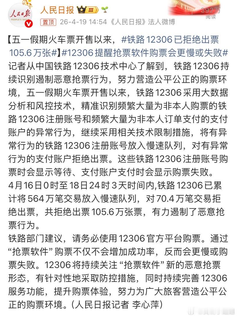 铁路12306已拒绝出票105.6万张很多人过节抢票都很困难,可以看看图2图3,作为常年出差人员,攻略看了下我的确觉得这样有点用其实我反倒觉得抢票软件没啥用,最容易买到的就是12306,其实还有个秘诀(如果公司飞书什么的有商旅,可以从商旅买,不知道为啥有时候全都没票的时候能从商旅买到)