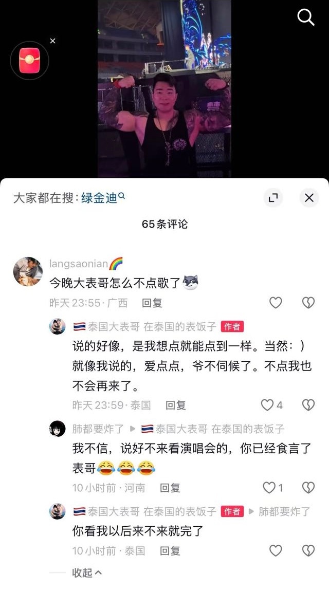 把自己太当回事儿belike,真以为自己在天王巨星面前是个特殊的葱了,还威胁下次不来了,没人在乎OK?PS:之前借别人女儿点歌的事情,如果周杰伦本人已经知道,这辈子这位也点不到歌了!