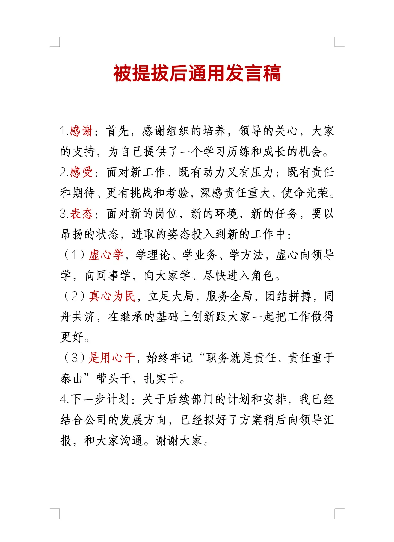 被提拔后这样上台发言。