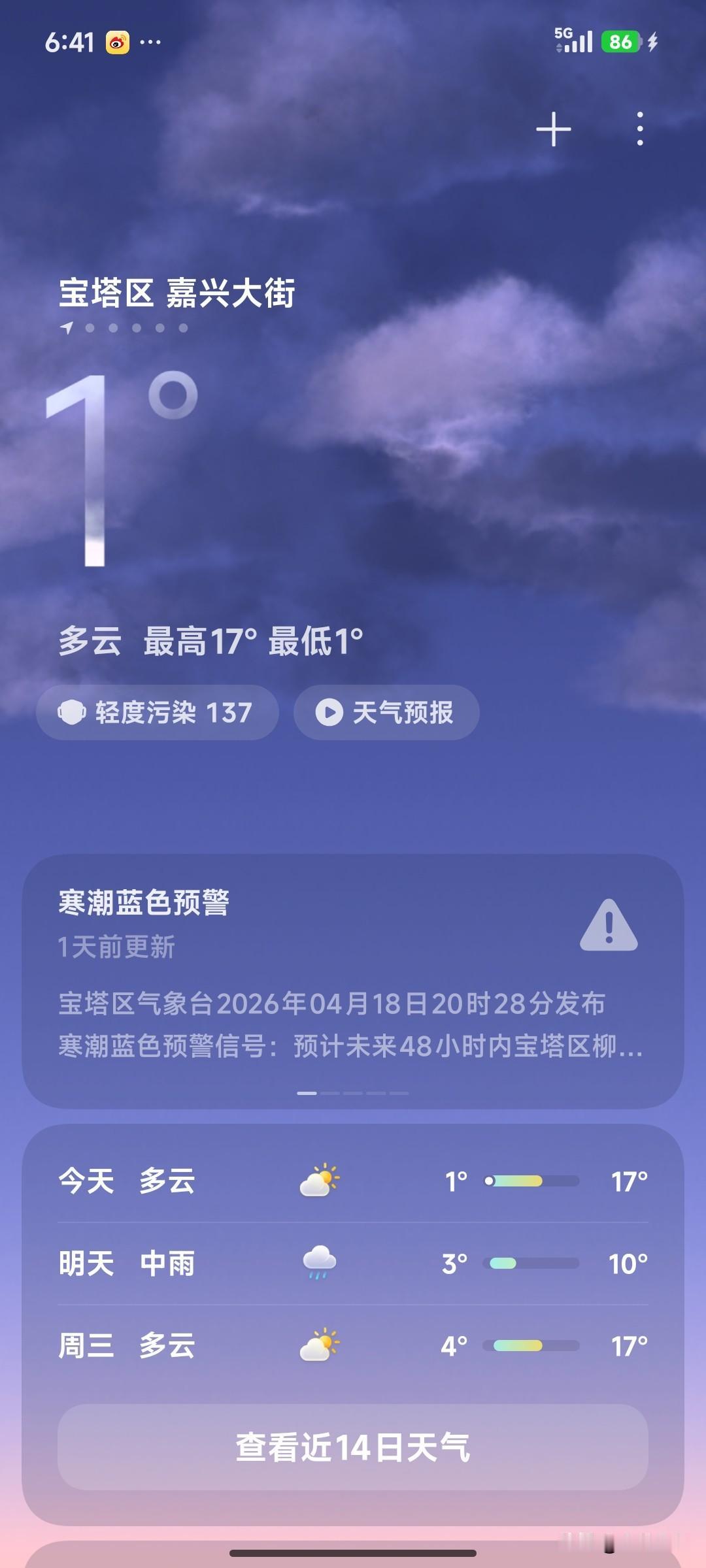 早上6:40了,太阳早出来了,可是天气预报只有1°。真叫人难以置信。 北方就是北方,哈哈哈!