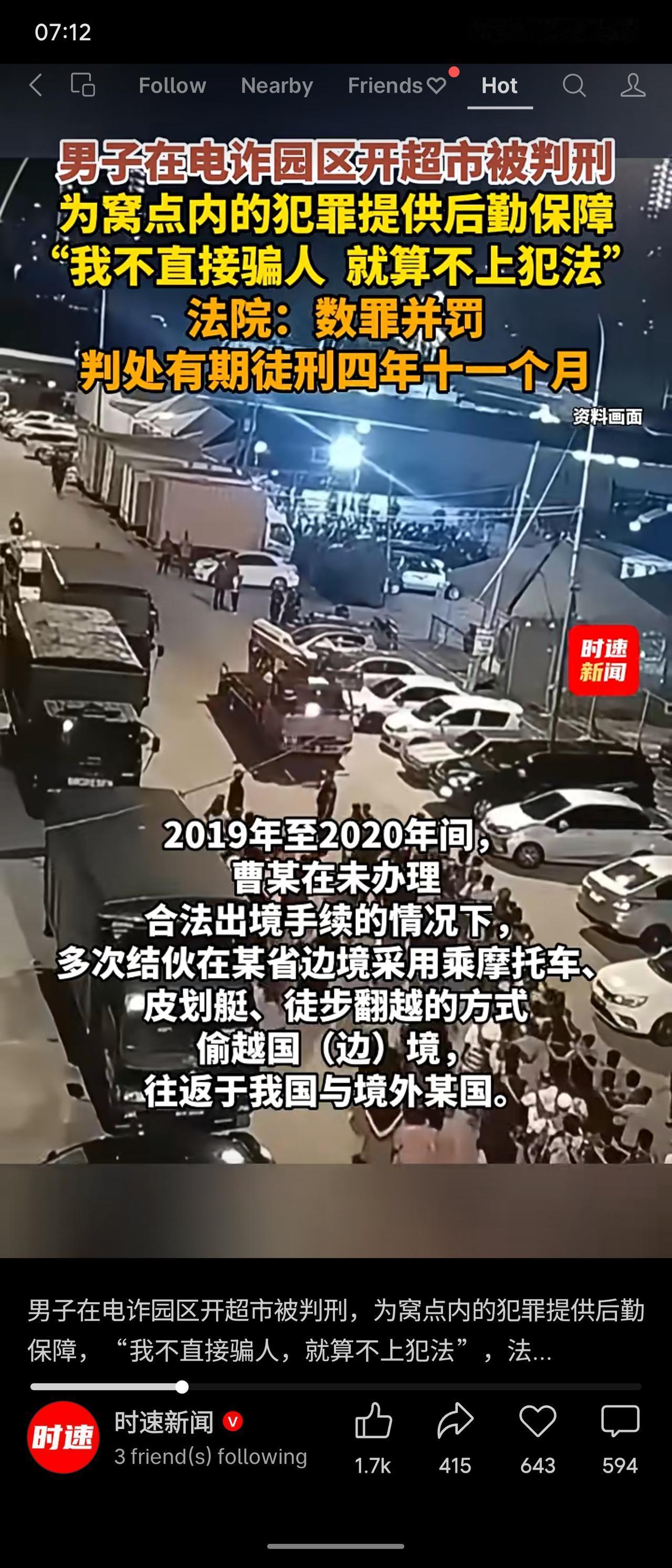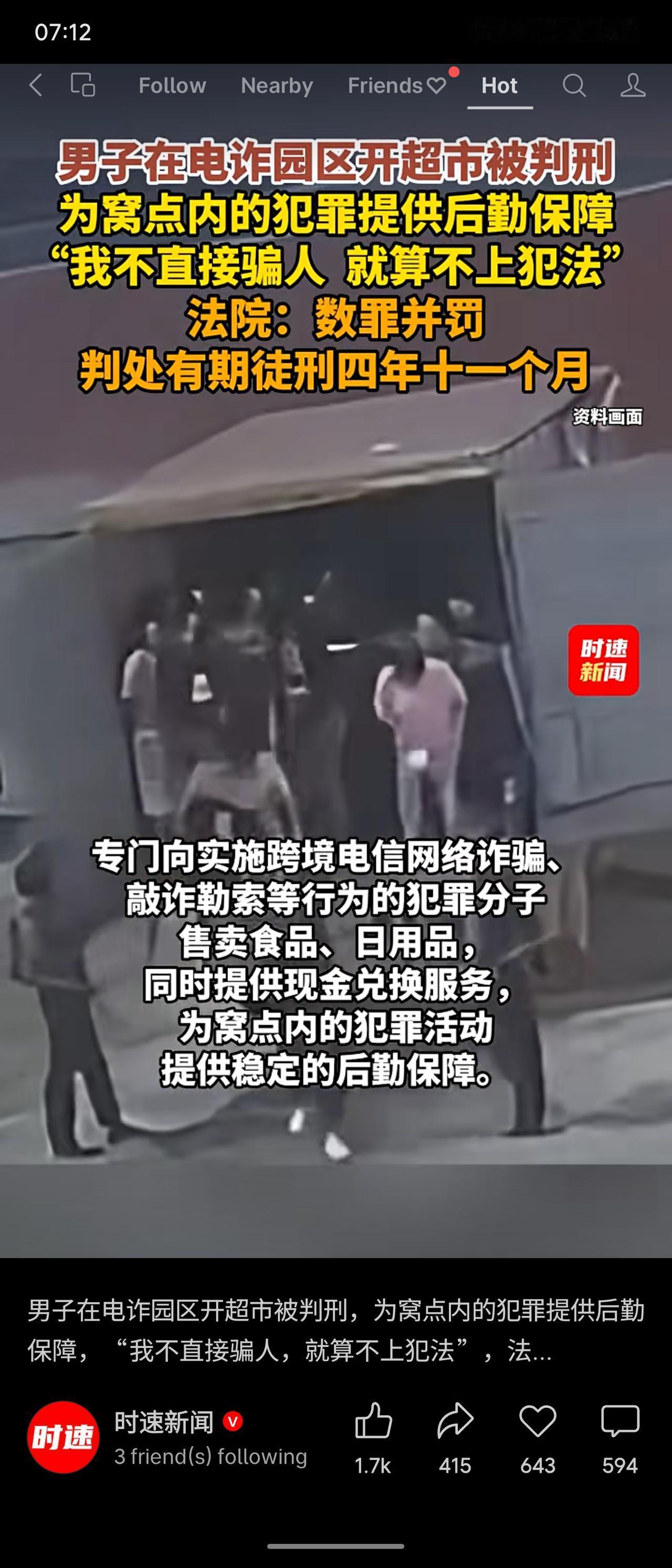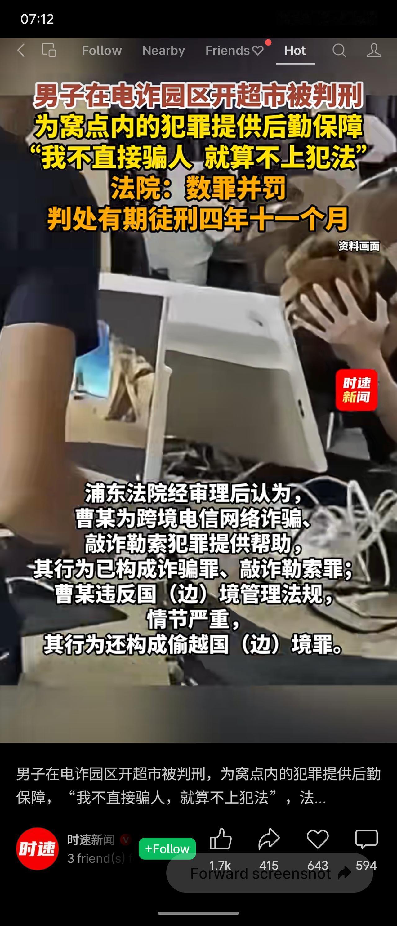 一名男子曹某在未办理合法出境手续的情况下,多次偷越国境,前往境外某专门针对我国公民实施电信网络诈骗、敲诈勒索的犯罪窝点。他明知该园区性质,仍缴纳高额租金和管理费,在园区内开设超市,向犯罪分子售卖食品、日用品,并提供现金兑换服务,为犯罪活动提供稳定的后勤保障。曹某认为“不直接骗人就不算犯法”,但法院认定其行为已构成诈骗罪、敲诈勒索罪的帮助犯,同时构成偷越国(边)境罪,最终数罪并罚,判处有期徒刑四年十一个月。