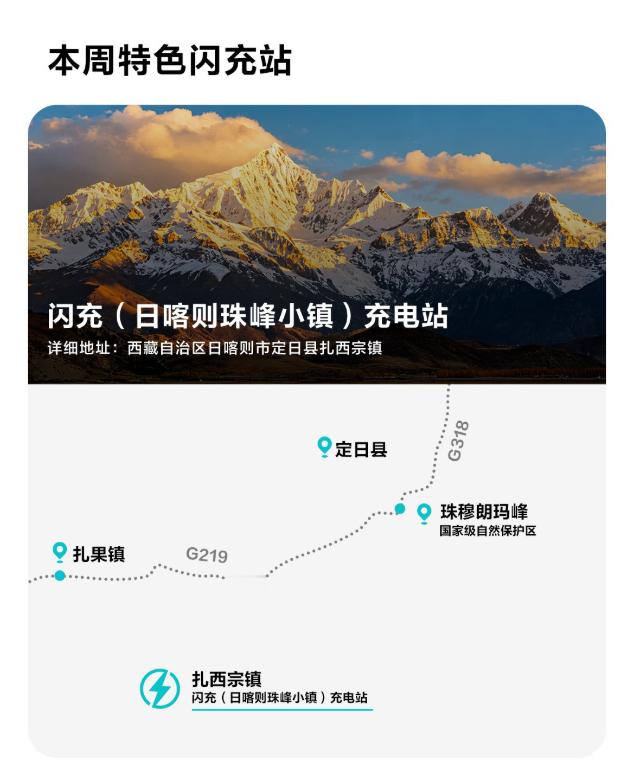同时,比亚迪珠峰小镇闪充站也已经正式投入运营,它也是距离珠峰最近的闪充点。