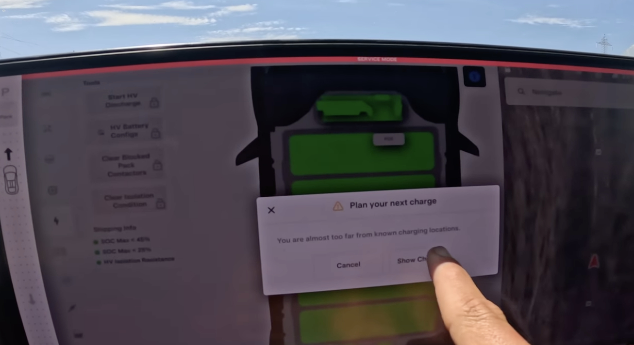 所以他只能尝试用太阳能补电,不得不说这个补电速度非常非常慢,一小时也就能增加1-2公里,所以指望它把电池充到能开往下一个充电站,是不可能的,但是能够防止高压电池完全耗尽而让车彻底趴窝,所以给了他充足的时间思考下一步怎么脱困。