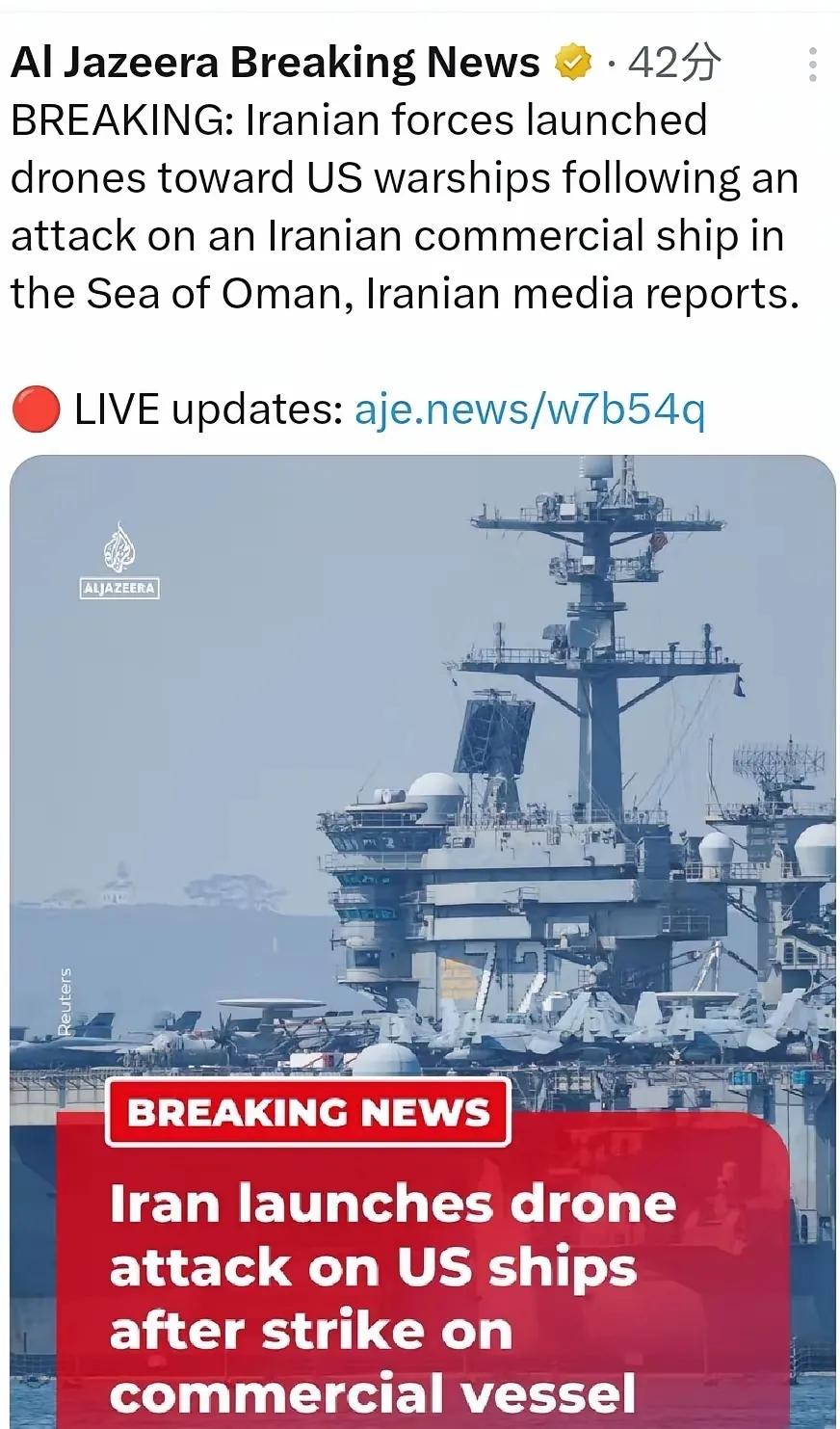 报复来了!战火又起! 作为对美国打击并扣押伊朗油轮“斯托卡号”的回应,伊朗发射了无人机对几艘美国军舰发起了攻击。半岛电视台说。 我觉得伊朗还是不够强硬,斯托卡号轮机室被毁,烧起熊熊大火,船也被扣押,最起码是导弹伺候,把美国军舰炸出几个窟窿来,才算扳回一局,无人机袭击效果有限啊,就那个速度,军舰上的机炮都能打下来,能对美舰造成多大伤害? 感觉伊朗现在是不是文官说了算,总没有之前强硬,畏首畏尾的感觉。既然都撕破脸了,就狠狠打击美军,美军的本事也露餡了,就那几下子,除了轰炸还是轰炸,伊朗现在是光脚的,为啥要怕穿鞋的?不理解。