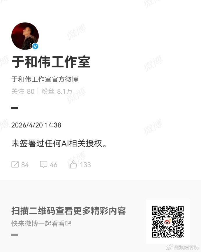 #多位艺人否认签约AI授权# 张若昀、李一桐、王楚然、于和伟相继发声,辟谣签约AI授权。