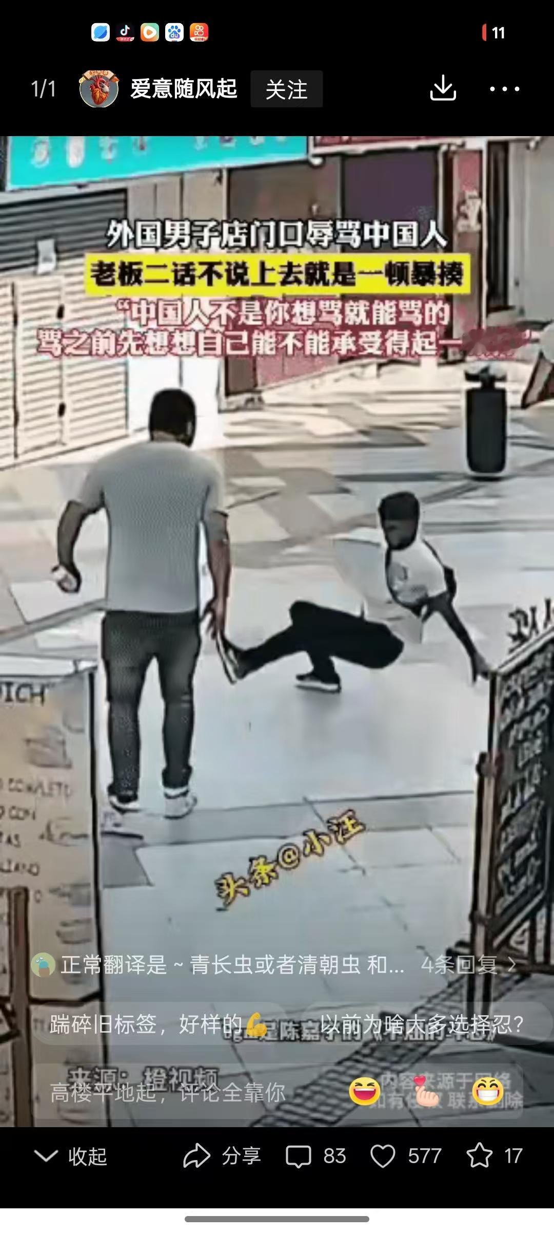 海外华人街上,一个外国男子路过中国人开的店,张嘴就是“秦腔穷”,冲着老板喊了好几遍。店主发现后上前与其交涉,对方并未收敛,依旧出言不逊,店主随即采取行动将其控制,现场视频发布后,引发不少网友关注。 该词汇是带有明显歧视性质的用语,历史上就被用于刻意侮辱华人,包含强烈的不友好与偏见意味。过去不少海外同胞在异国遇到类似冒犯,出于息事宁人的想法,大多选择忍让,不愿因此引发矛盾。 近年来,随着国人自信心不断提升,在海外遇到针对性歧视与侮辱时,越来越多人不再一味退让,而是选择合理维护自身与民族尊严。无论是海外博主还是留学生,在遭遇类似挑衅时,都会站出来表明态度,拒绝无端欺辱。 我们始终秉持友善包容的处事原则,尊重不同国家与文化,也愿意与他人和平相处,但这并不代表可以接受恶意冒犯。人与人之间相处,尊重是相互的,面对公然的歧视与侮辱,适当反击是维护自身底线的正常反应。 这位店主的行为,本质上是对歧视言行的拒绝,也是在告诉外界,华人不主动惹事,但也绝不怕事。尊严需要靠自己守护,一味妥协并不能换来真正的尊重,理性且坚定地表明态度,才是面对偏见该有的姿态。