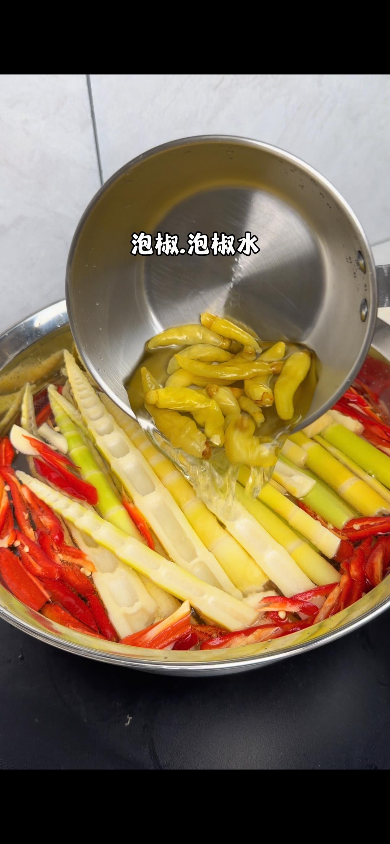 谁能拒绝酸辣脆爽的竹笋?用雪碧做的泡椒竹笋好吃到停不下来,做法超简单,在家就能复刻~ 1️⃣处理食材:竹笋下锅焯水5分钟捞出。备好小米辣、蒜片、姜片,灵魂调料组合有盐、白醋和一瓶雪碧~ 2️⃣熬制料汁:所有调料加入雪碧,搅匀,倒入装着竹笋的大碗里,确保每根竹笋都泡在料汁中,冷藏浸泡一晚更入味~ 3️⃣开吃秘诀:泡椒味里带着雪碧的清甜,又白又嫩的笋子酸脆爽口,一口下去超治愈,这神仙味道比外卖还绝~