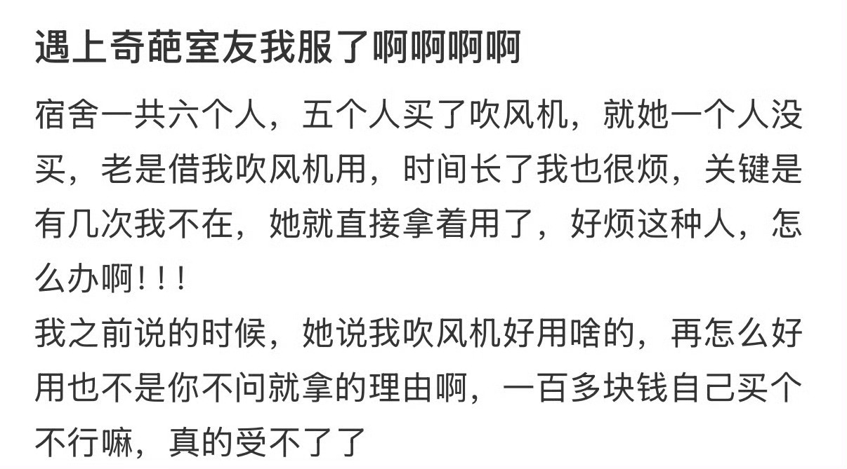 室友不买吹风机,总找我借