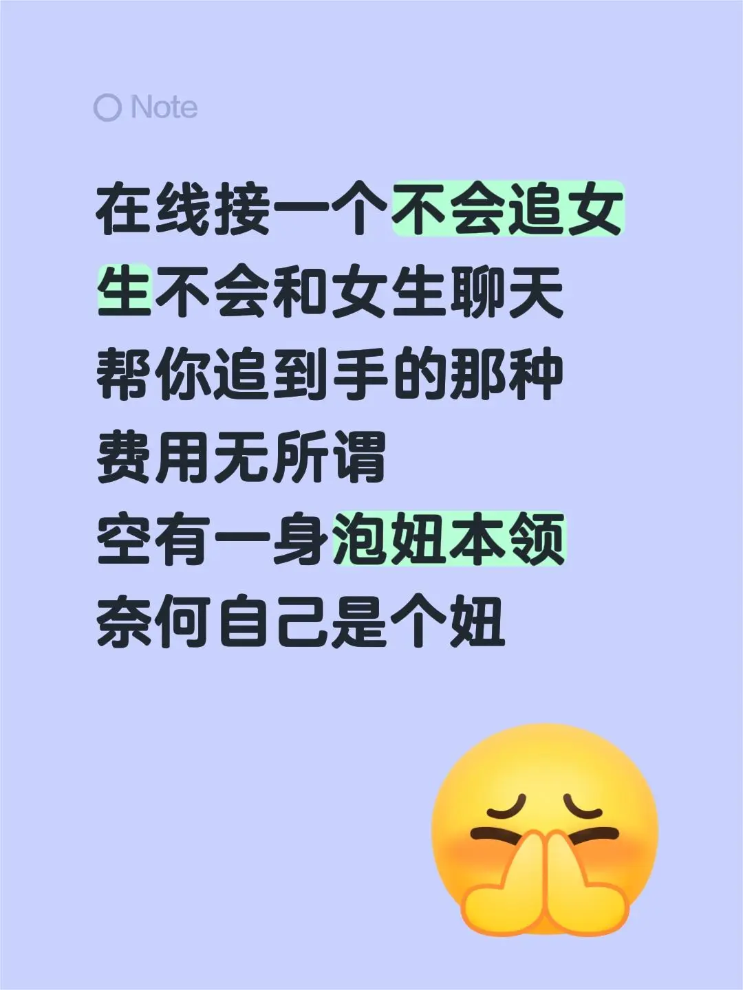 在线接一个不会追女生不会和女生聊天帮你追到手的那种费用无所谓空有...