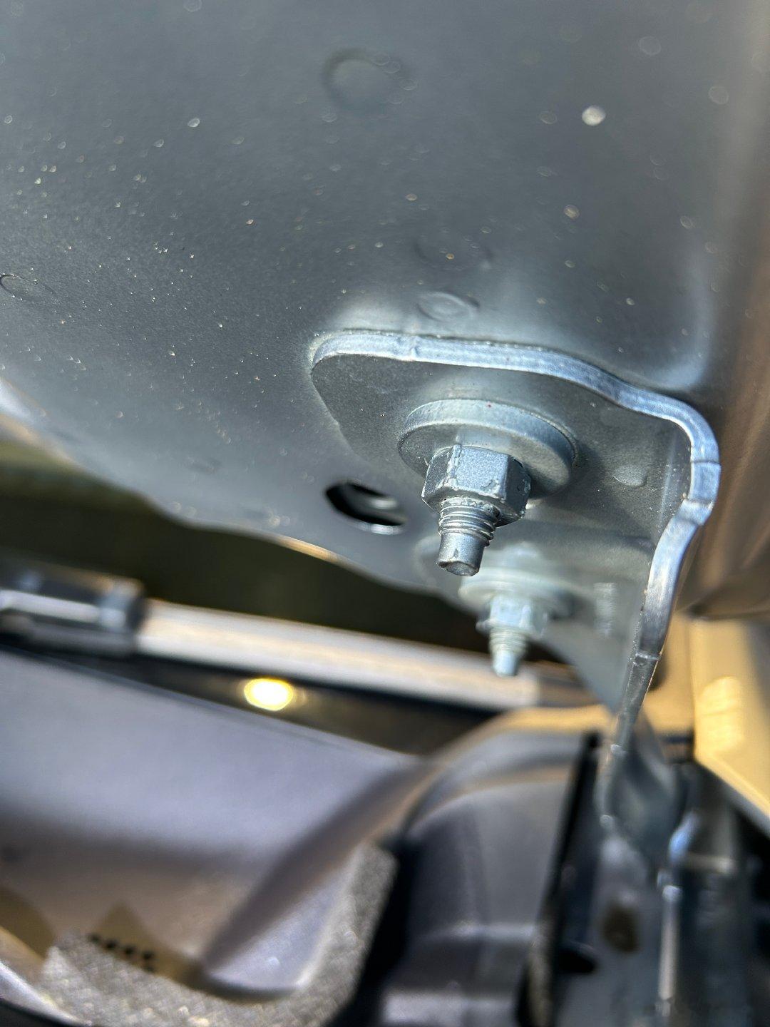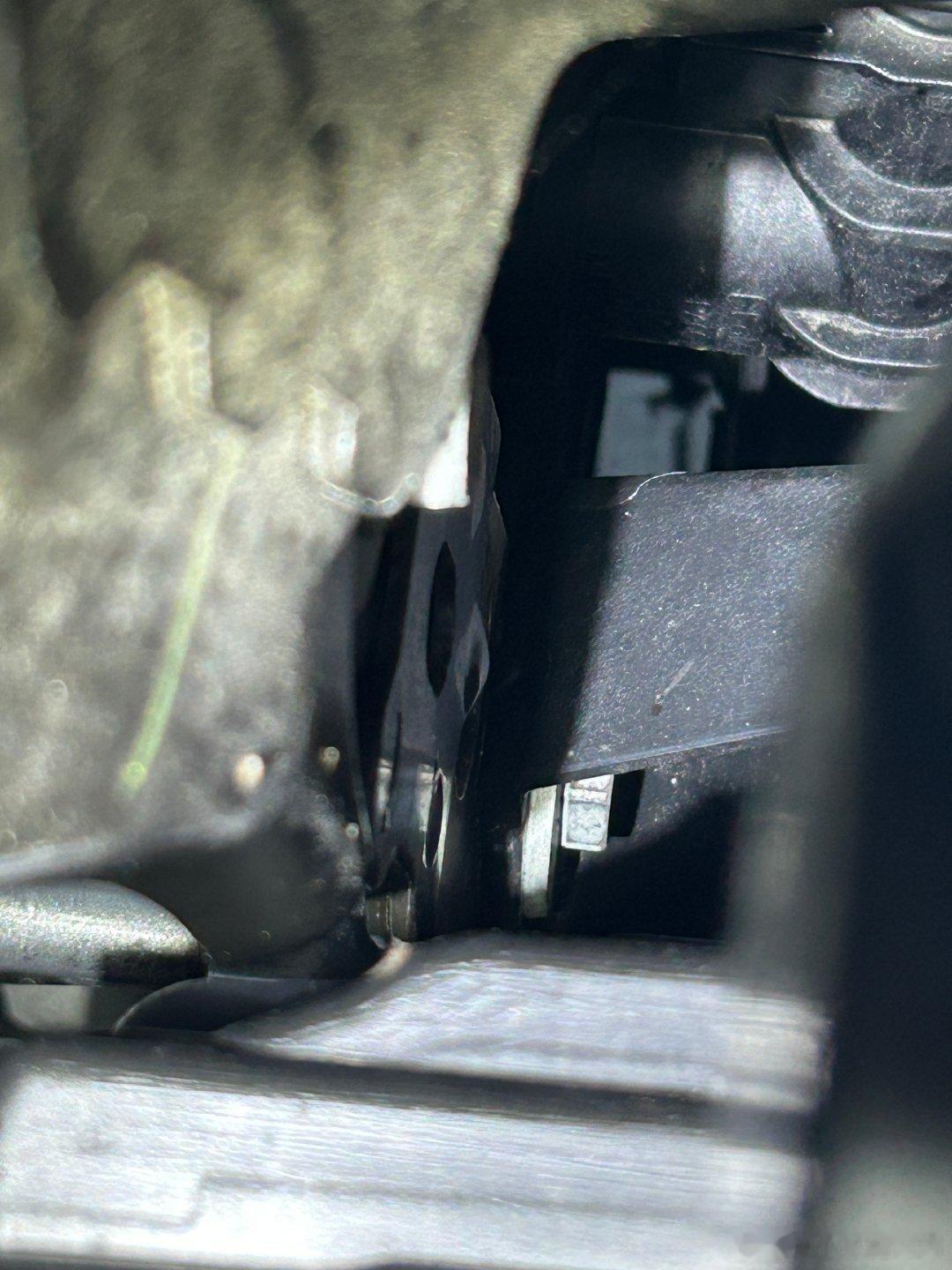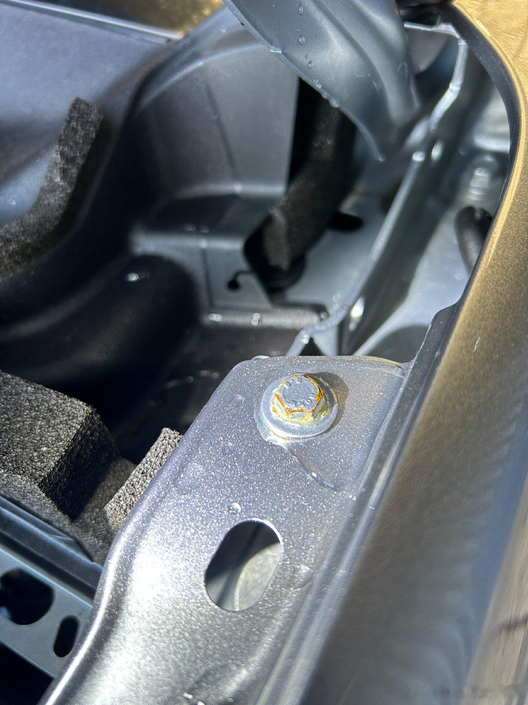 前面的雷达探头和水箱散热器的导风板也都是 2025 年的。前面防撞钢梁有拆卸痕迹,合理怀疑是更换过了。