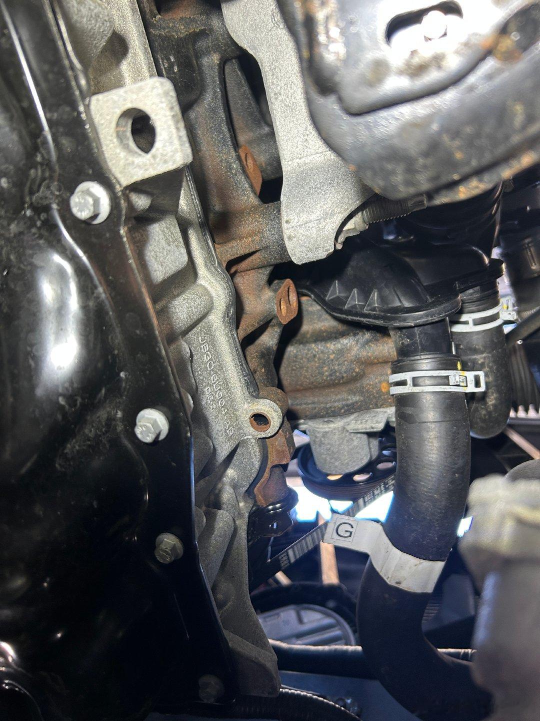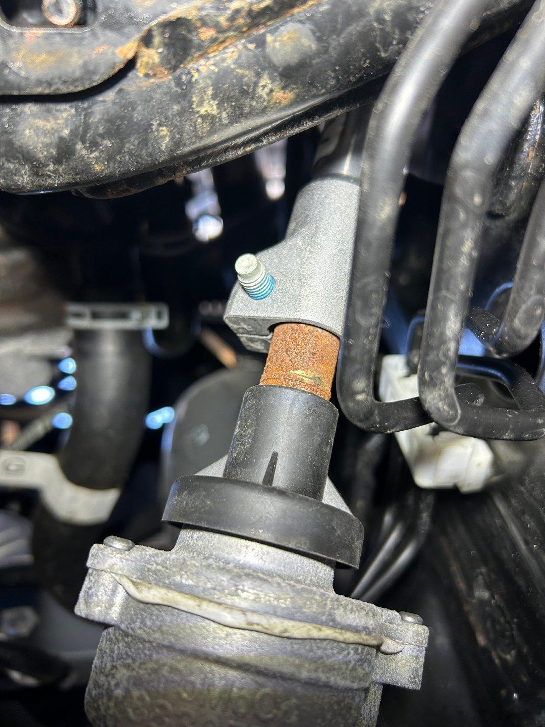 这种就是典型的“前嘴一套”了。不过好在这是非承载式车身,钻到车下面去看,大梁主体结构没什么问题。但是 - 两年车龄不到的车,大梁、转向立柱和发动机缸体锈蚀得非常严重。检查了车内的地毯、座椅骨架这些东西,没有泡水痕迹。那么基本上就只有一种解释了,原车主拿着车去玩越野,比较多的玩过水。