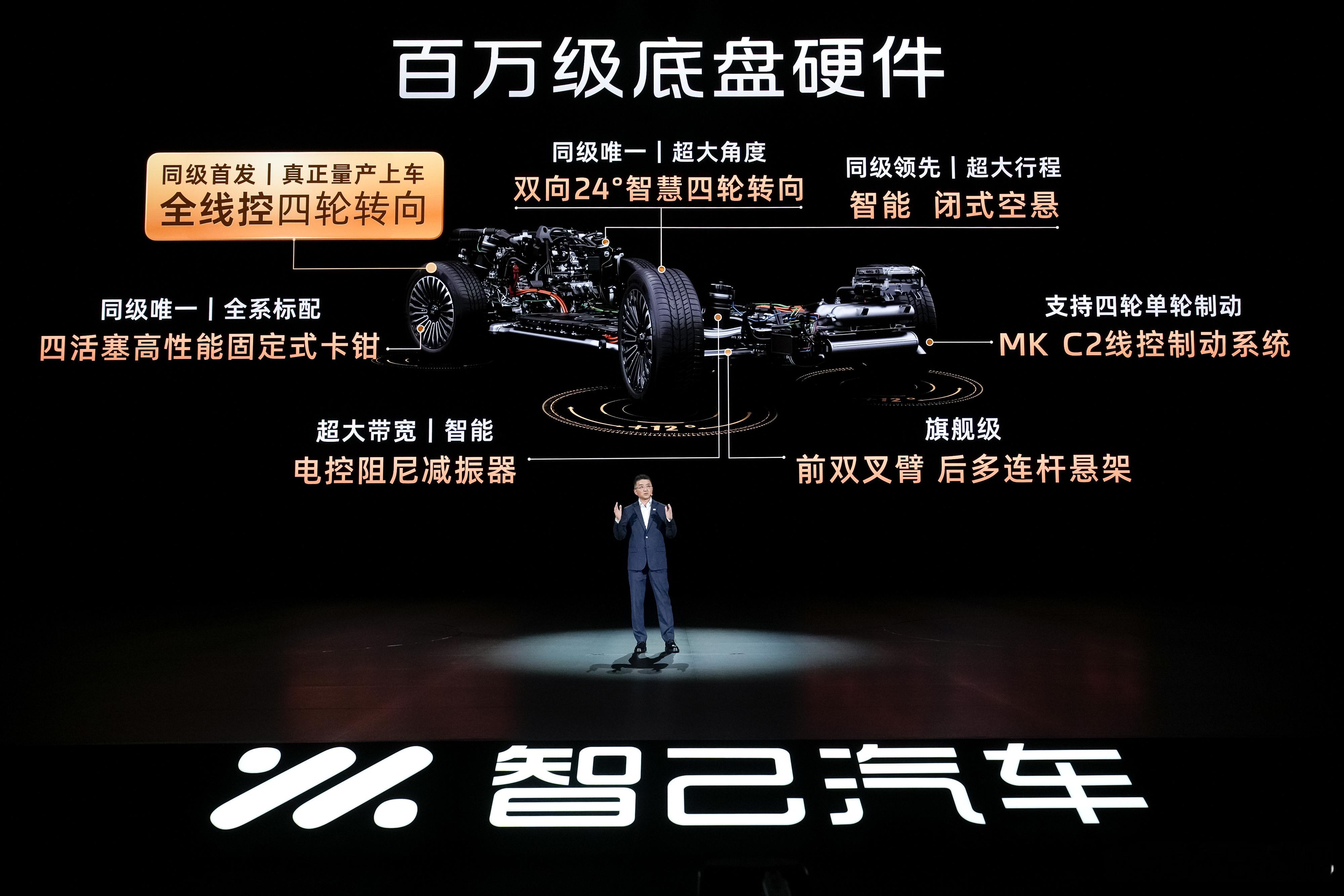 驾控方面,智己 LS8 全系配备线控四轮转向系统,首次将该配置下放到 30 万内车型,低速打半圈方向盘就能完成掉头,转弯半径仅 4.85 米,比 A0 级小车更灵活。新车还搭载前双叉臂后、多连杆悬挂、智能闭式空气悬架以及德国大陆线控制动系统。