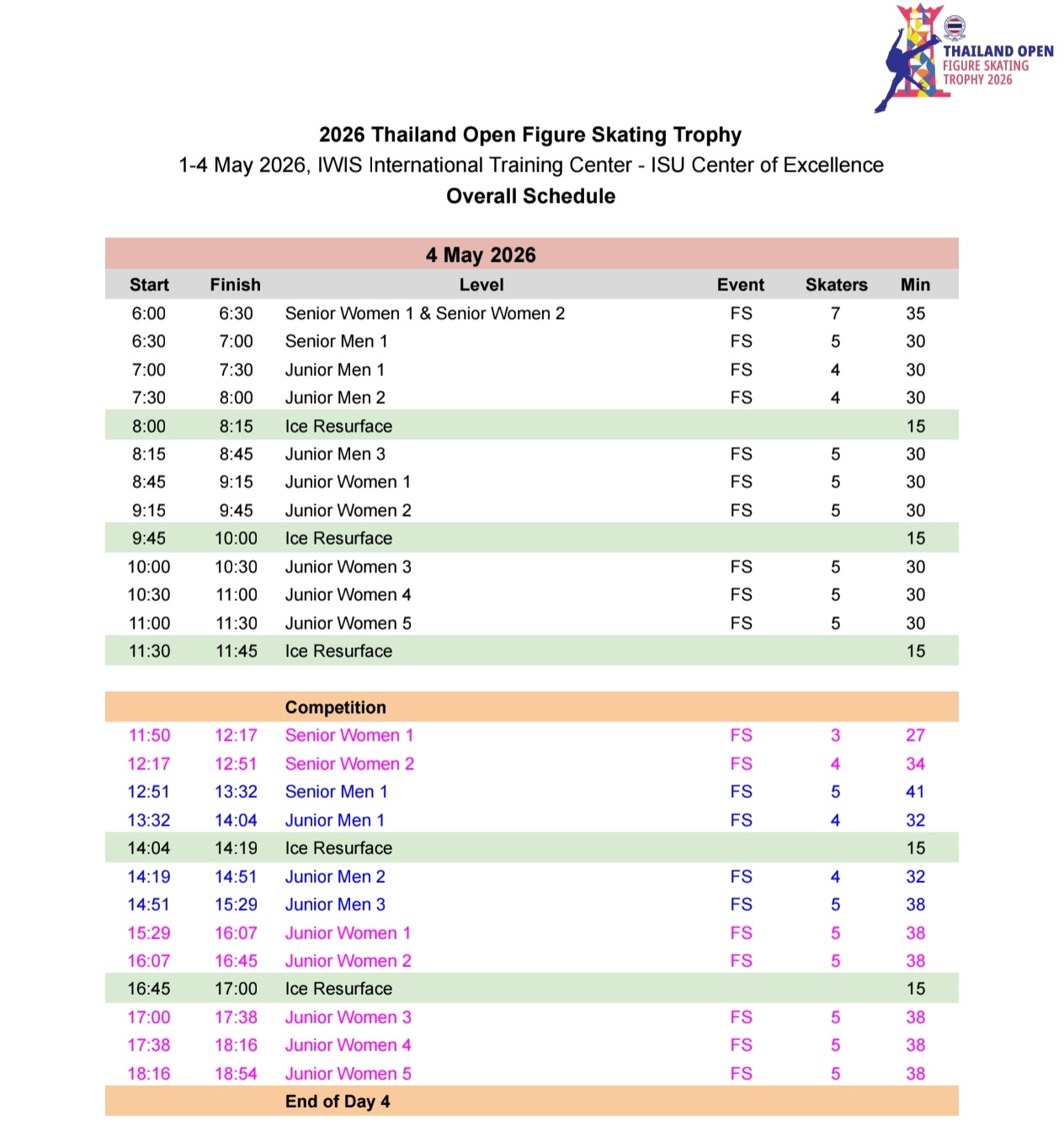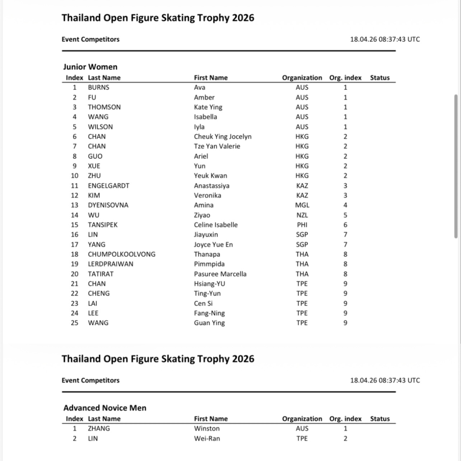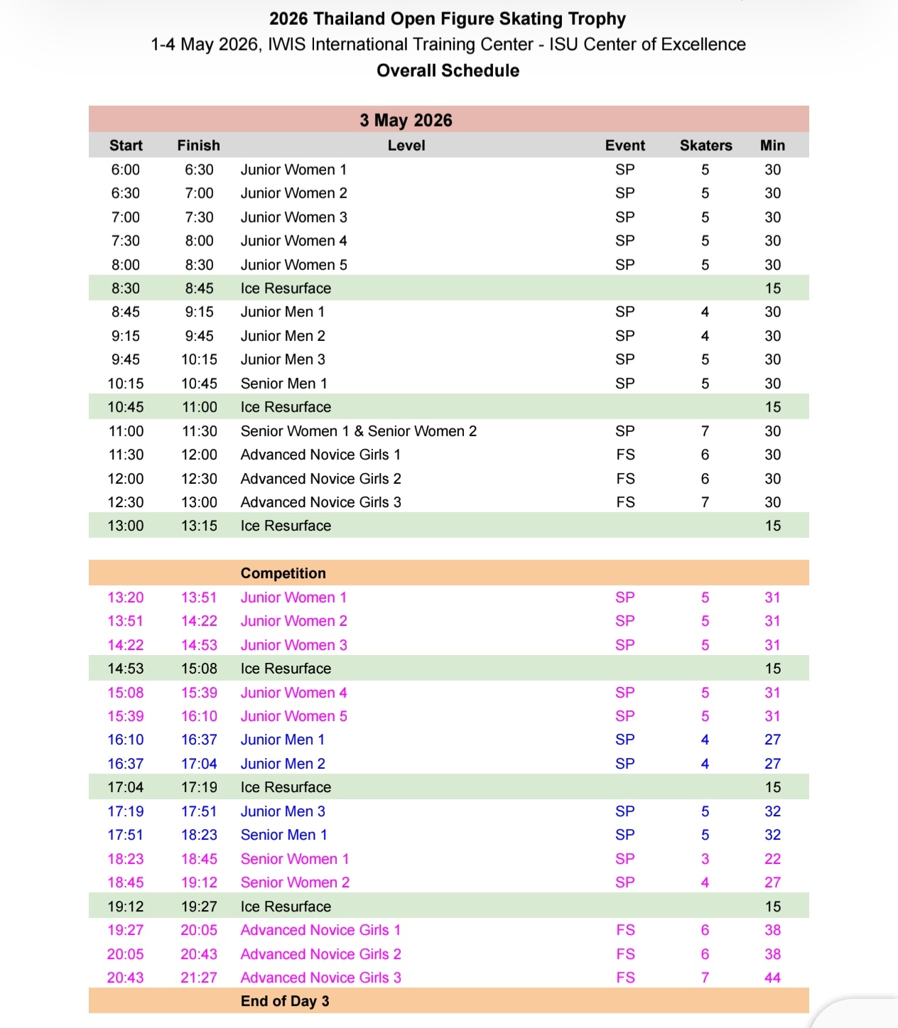 2026泰国花样滑冰公开赛亚洲的B级赛🇹🇭时间贯穿五一假期5.1-4主要看