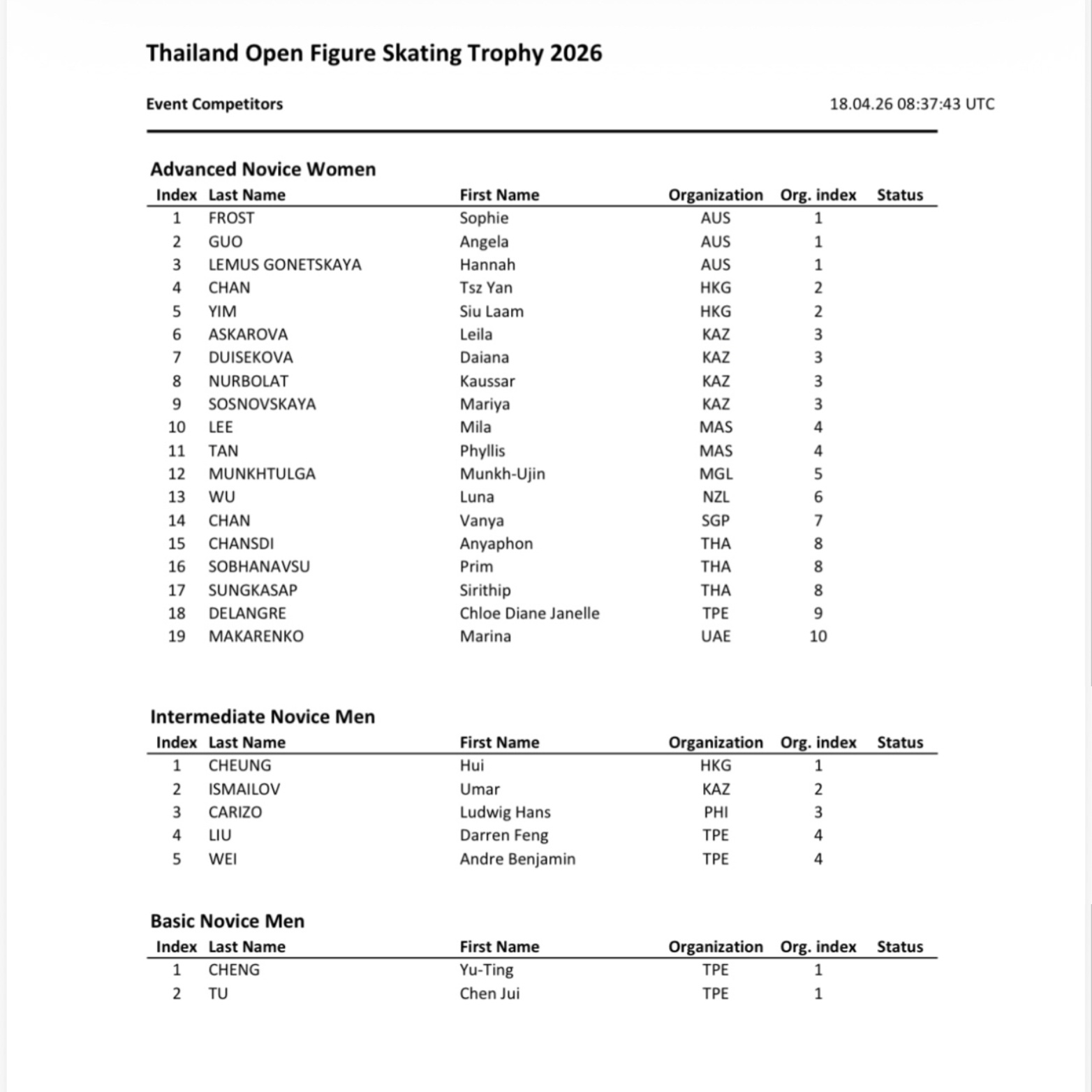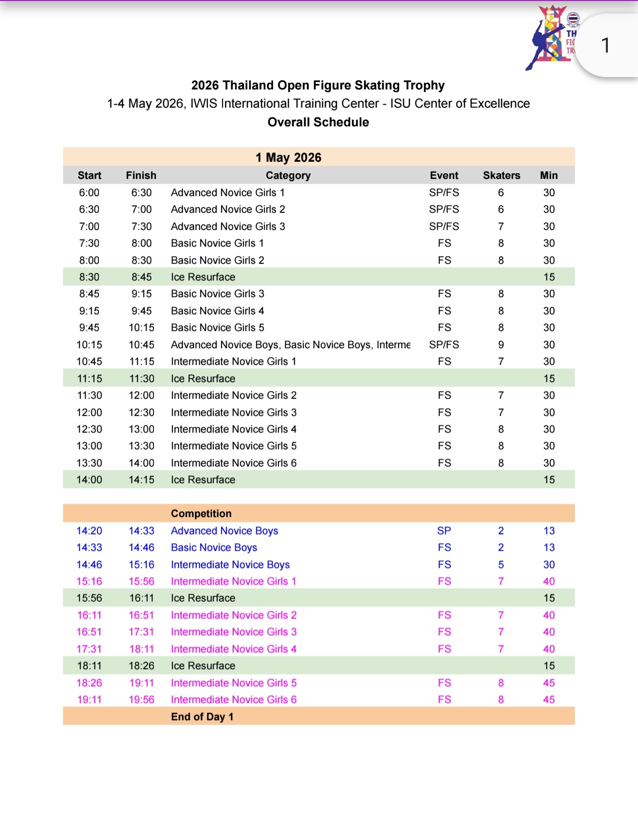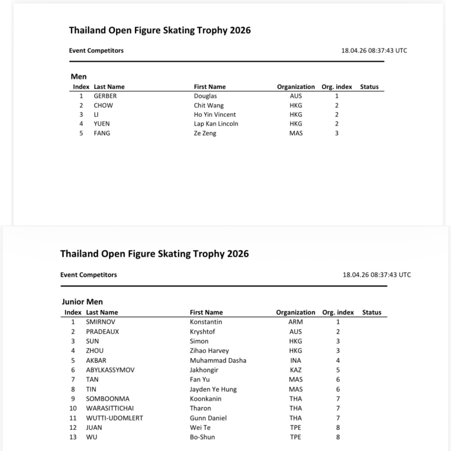2026泰国花样滑冰公开赛亚洲的B级赛🇹🇭时间贯穿五一假期5.1-4主要看