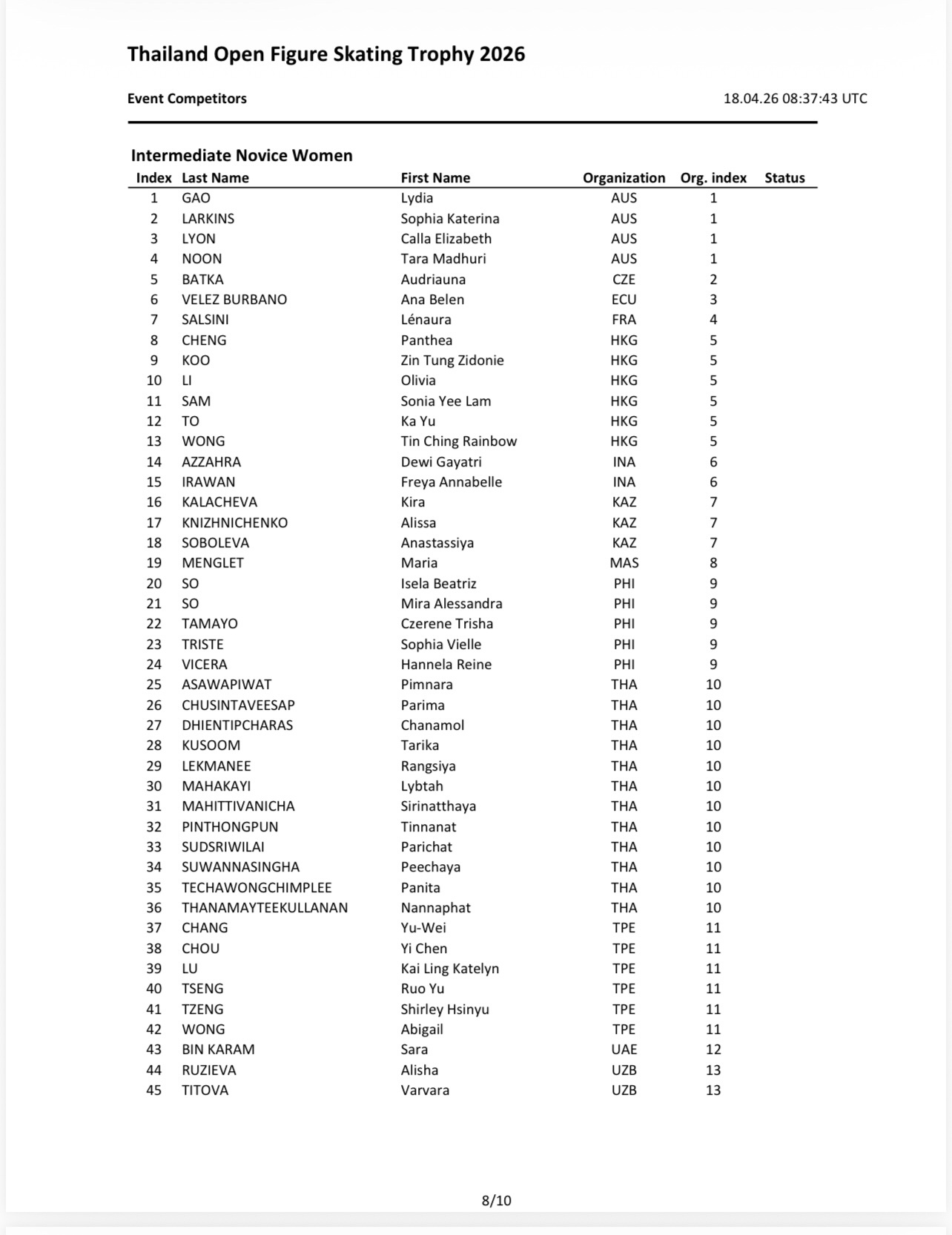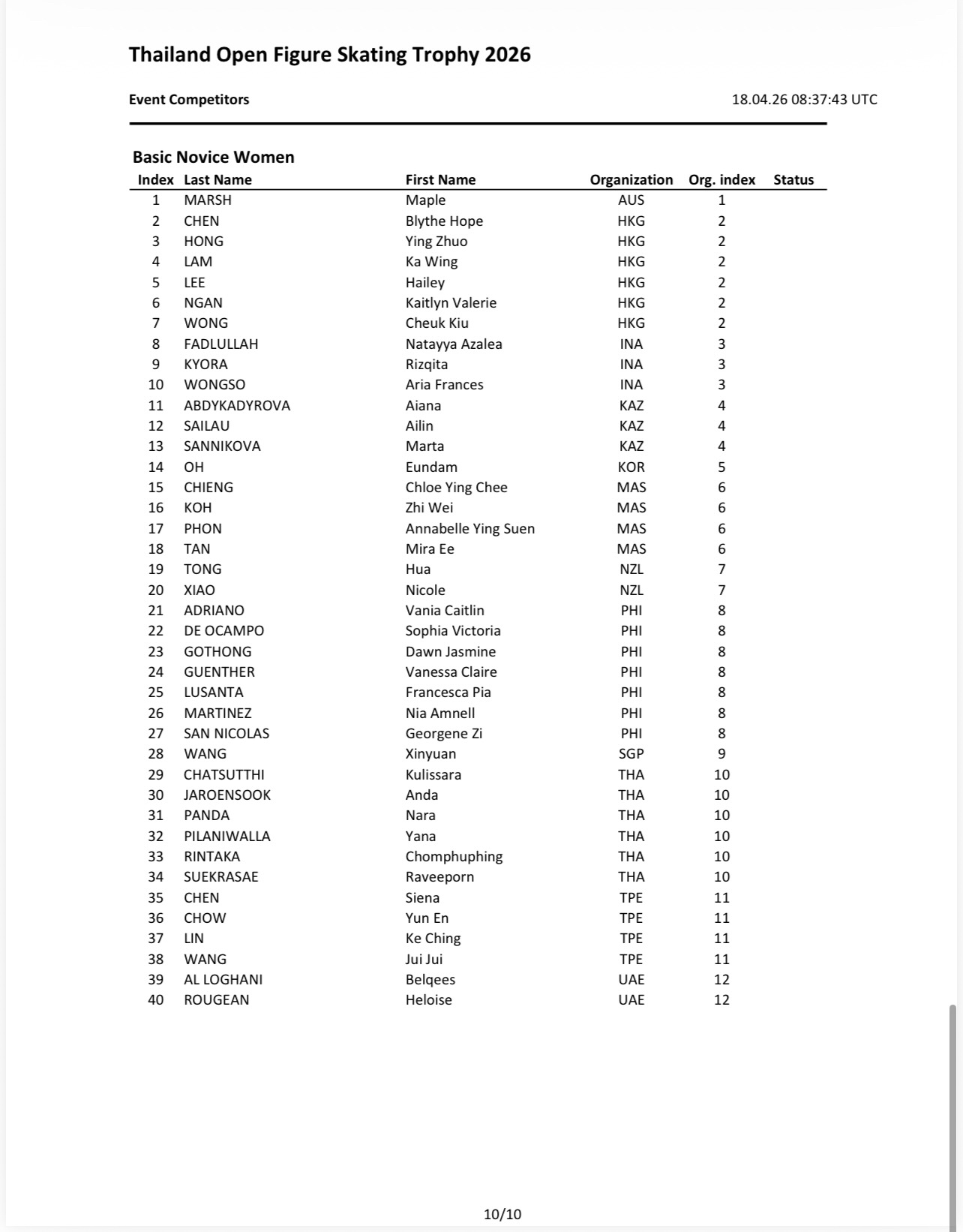 2026泰国花样滑冰公开赛 亚洲的B级赛🇹🇭时间贯穿五一假期5.1-4主要看点是青年组女单的港队五朵金花
