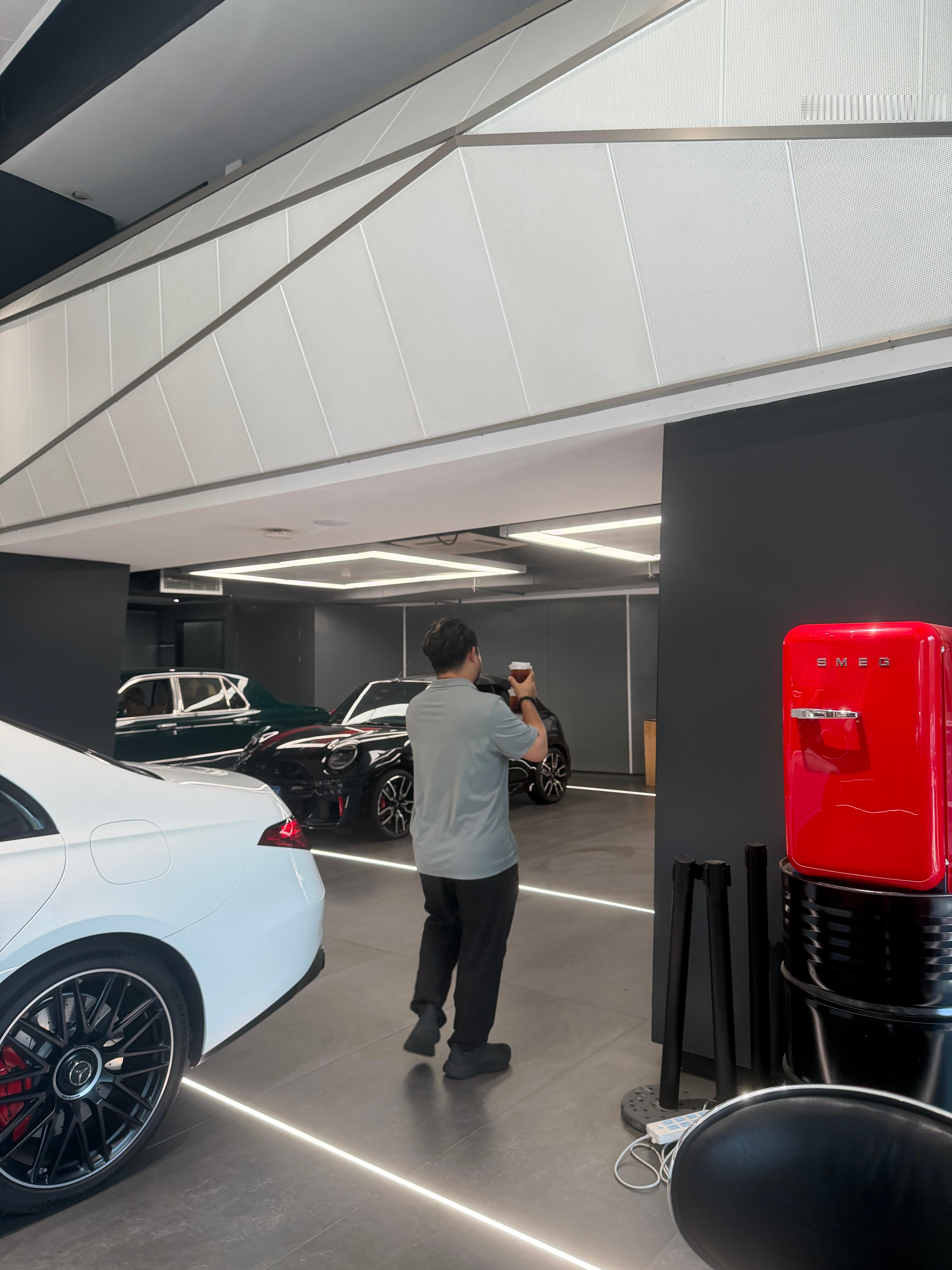 又给我搂了三杯咖啡走