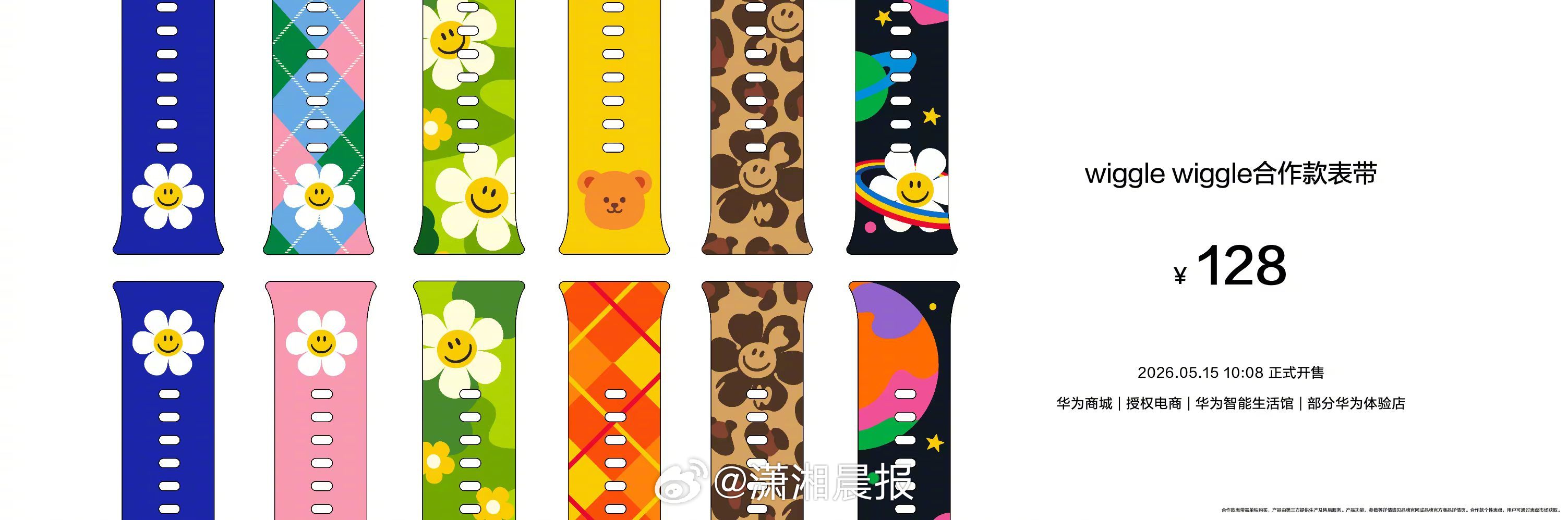 #华为手表牵手wigglewiggle# 从FIT 3的艺术家联动,到FIT 4的潮流工作室合作,再到华为WATCH FIT 5宣布与潮流品牌wiggle wiggle进行联动合作,华为在智能手表的配饰化属性上又完成了一次风格跃迁,将潮流IP的视觉语言融入表带、表盘,配合手表的快拆表带以及装饰扣等创新,助力智能手表从腕上穿戴转向个性符号与时尚穿搭单品,让手表成为可表达个性的腕上符号。#华为手表wigglewiggle跨界联动# 据悉,合作款表带售价128元,将于5月15日正式开售。
