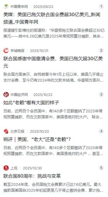 联合国如今急着向中国伸手要钱,但中国态度已经说得很清楚:不再充当冤大头,每一分钱,都是14亿人流汗拼出来的,是一分一厘攒下的,绝不是天上掉下来的。 联合国如今的日子,已经快过不下去了。 麻烦看官老爷们右上角点击一下“关注”,既方便您进行讨论和分享,又能给您带来不一样的参与感,感谢您的支持! 到2025年底,这家全球最大的国际组织因为会员国长期巨额欠费,陷入了极为严重的财务危机。截至当年9月底的数据显示,常规会费和维和会费两项加起来,欠款总额已经超过了30亿美元。联合国秘书长古特雷斯在10月份向联大第五委员会提交2026年度预算时,发出了一个沉重的警告——如果会员国不能按时全额缴纳会费,联合国将面临破产危机,眼下的流动性危机不光影响明年,还可能持续拖到2027年。这不是危言耸听,早在2019年联合国就曾面临十年来最严重的资金危机,而这一次的困局显然更加严峻。 缺钱到了什么程度?联合国总部连厕所都不提供擦手纸了,维和行动也被迫大幅缩减,今年10月有报道称联合国准备裁撤大约25%的维和人员和特派团代表,总人数达到1.4万人。古特雷斯还曾打算卖掉秘书长官邸来筹钱,这种窘迫对一家拥有193个会员国的全球性组织来说,实在让人难以置信。 那么问题来了,到底是谁在赖账? 答案一点也不意外。在全球近两百个会员国中,已经有140多个国家按时足额缴纳了2025年的常规预算摊款,但欠款名单里的头号大户依然是美国。自特朗普2025年1月重新上台以来,这个全球最大的经济体几乎停止了向联合国支付会费,不但2025年全年分文未交,就连2024年的欠款也一直拖着没结清。据美媒报道,截至2025年9月,华盛顿拖欠联合国会费超过30亿美元,其中有8.26亿美元是2025年常规预算的分摊款,其余是往年的陈年旧账和未缴纳的维和经费。 把美国单独拎出来看,联合国方面确认,截至2025年9月底,光是美国拖欠的会费就有大约15亿美元。联合国秘书长发言人迪雅里克在12月22日的记者会上直言,用“十分困难”来形容联合国当下的处境都算轻描淡写了。然而又是三周过去,美国仍然一分钱都没交。事实上,美国拖欠联合国会费早已不是什么新鲜事。自上世纪80年代里根时期开始,美国就以各种理由常年占据欠费榜首位,多次将拖欠会费当作政治工具来用——想获得联合国支持的时候就补缴一点,不顺心的时候就继续赖着。1989年海湾战争前夕美国还清了欠款,2001年“9·11”后为了反恐战争再度还钱,但2003年联合国不支持伊拉克战争,美国就又不交了。 美国给出的借口五花八门。表面理由是联合国财政年度和本国财政年度不一致,导致预算审批存在时间错位,但联合国的记录显示,至少从2013年以来美国从未在任何一年缴清过当年会费。更深层的原因在于维和经费的分摊比例。联合国给美国设定的维和经费分摊比例为27%,但美国国内早在1994年就通过立法,规定自己缴纳的比例不得超过25%,这2个百分点的差额长期成为美国与联合国之间的结构矛盾。 要说美国没钱吗?当然不是。2025财年的国防授权法案把军费支出提升到了近9000亿美元,联合国会费连这个数字的零头都不到。问题的本质很简单——美国只想占便宜,不想尽义务。近年来美国在联合国的实际影响力持续下降,新兴国家和发展中国家的话语权不断提升,美国就动辄以拖欠会费作为施压手段,想逼迫联合国在某些议程上向自己让步。有分析认为,只要联合国在重大国际事务上没有跟美国保持一致,白宫就会使出欠费这一招。 与美国形成鲜明对比的是中国的表现。 联合国官方资料显示,中国是联合国第二大会费分摊国,承担20%的会费比例,仅次于美国的22%,远高于排在第三的日本——日本的分摊比例仅为6.93%。2025年10月30日,联合国秘书长副发言人哈克在例行记者会上宣布,中国已全额缴纳了今年的联合国常规会费,总额高达6亿8573万美元。发布会上,哈克还特意用中文说了声“谢谢”。 这笔钱对于深陷财政泥潭的联合国来说,无疑是雪中送炭。哈克当时强调,当前联合国的财政紧张到了极点,每一笔足额缴款都至关重要,中国的行动为其他国家树立了榜样。 但更值得注意的是,中国在掏钱的同时也把话说得非常清楚。在联合国大会第五委员会的会议上,中国常驻联合国副代表孙磊大使系统阐述了中方立场:联合国当前面临的挑战不仅仅是钱不够,更重要的是如何把钱用好,提高效率、厉行节约、减少形式主义和官僚主义应当成为改革的重要方向。中方还明确提出,联合国的预算安排应该更加兼顾发展中国家的利益,无论是在资源分配还是秘书处人员构成上,都应提升发展中国家的代表性,增强透明度和问责机制。