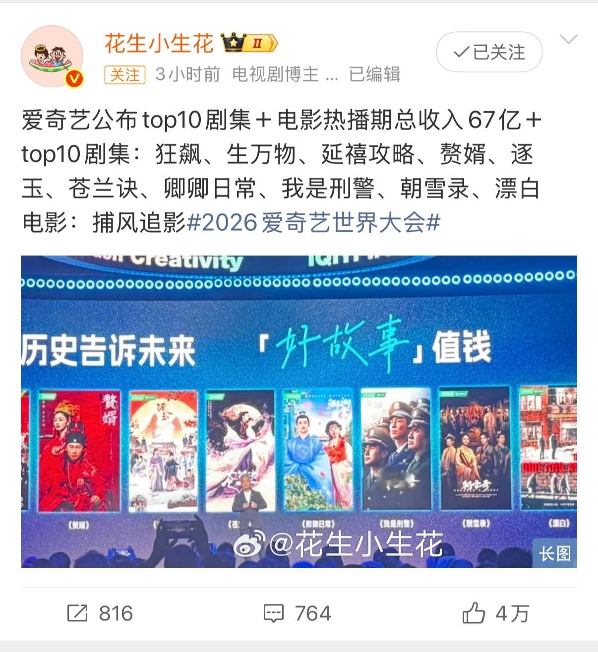 果果姐姐别生气啦,虽然你们没有大男主单人海报单人物料,虽然爱奇艺官博前排没有你们,爱奇艺最赚的10部大剧没有你们,爱奇艺2026年重点储备剧集也没有你们,但你们有自欺欺人的阿Q精神呀