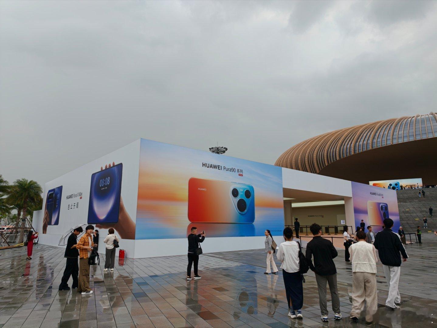 华为Pura90华为发布会来到了华为Pura90系列的发布会现场,第一次来这个会馆,就在深中通道的旁边,能直接看到非常震撼壮观的深中通道,华为这次的主打色橘子海,你还真别说,在这个海边真的很漂亮,他们搭了一个特别漂亮的景,然后还有跟手机同款的彩色的冰饮,这个粉色的挺好喝,三台新品手机我都已经预定了,等到下午的时候直接就付尾款。 广州·大湾区文化体育中心