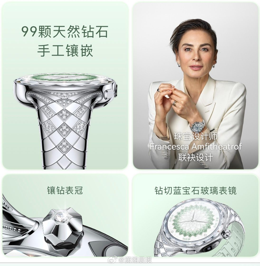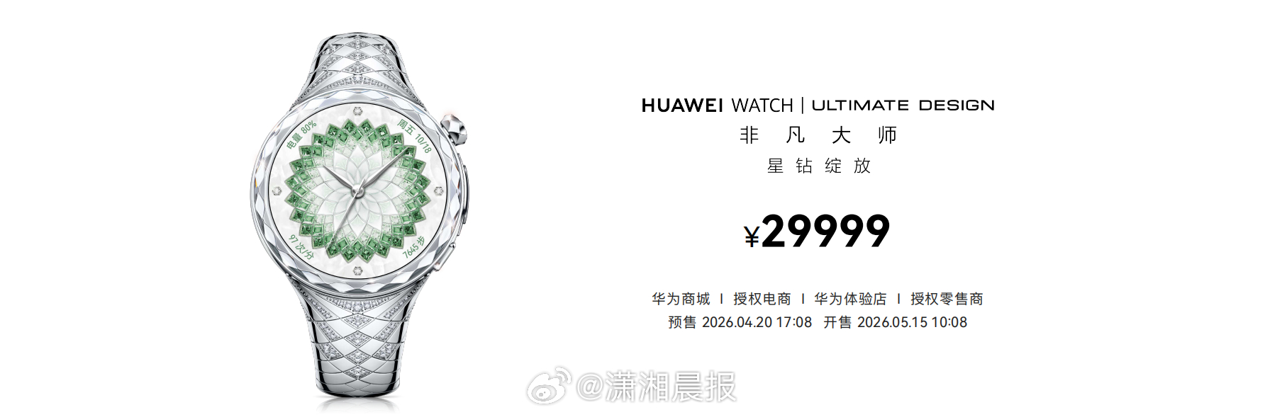 #华为钻石腕表08分开卖09分售罄# 华为首款珠宝智能腕表——HUAWEI WATCH ULTIMATE DESIGN 非凡大师 星钻绽放款今日17:08正式预售,仅一分钟便宣告售罄,足见市场热度与消费者认可度之高。这款售价29999元的腕表全表镶嵌99颗天然钻石,由国际著名珠宝设计师Francesca Amfitheatrof与华为联合打造,国际超模刘雯担任品牌大使。搭载玄玑感知系统,支持生理及情绪健康监测,兼备星闪车钥匙、eSIM独立通话等智慧功能。华为以科技赋能珠宝美学,为高端智能腕表市场注入全新活力。