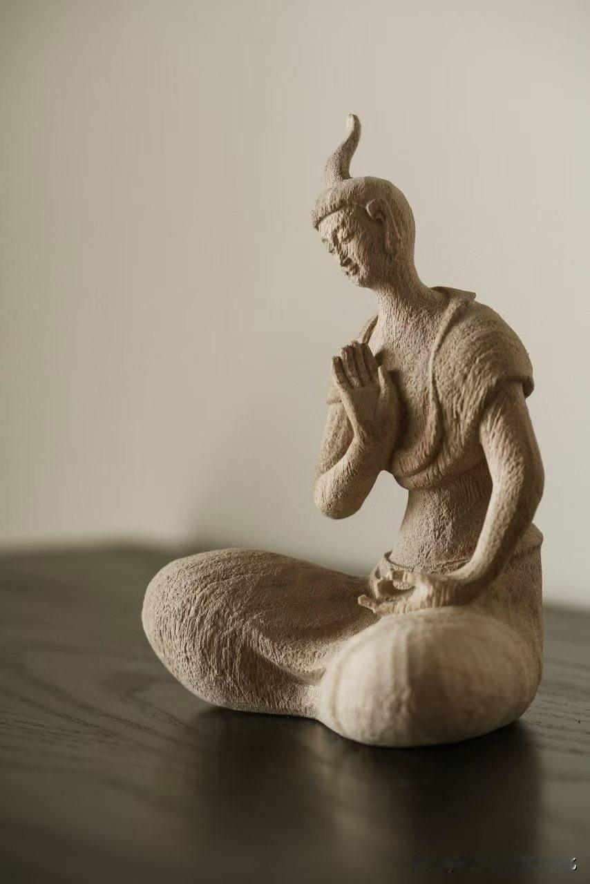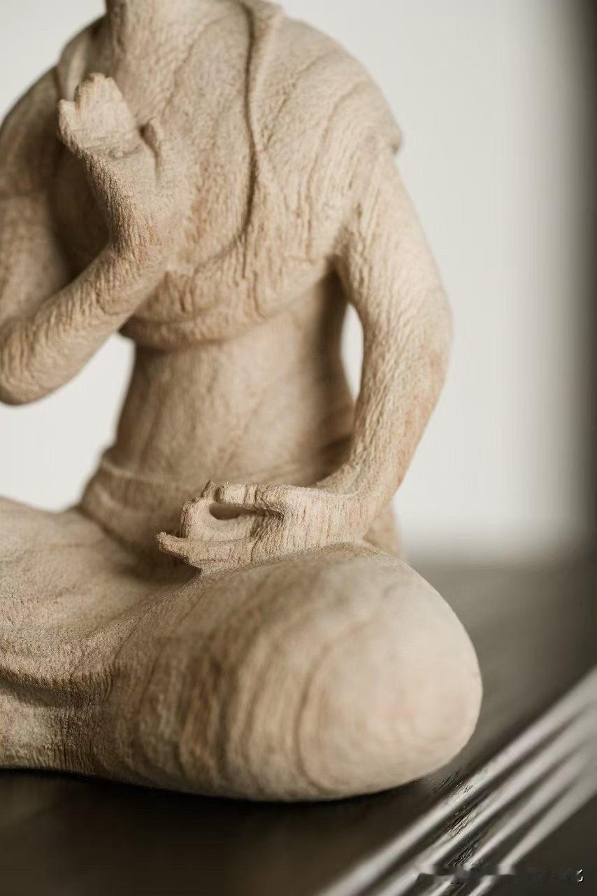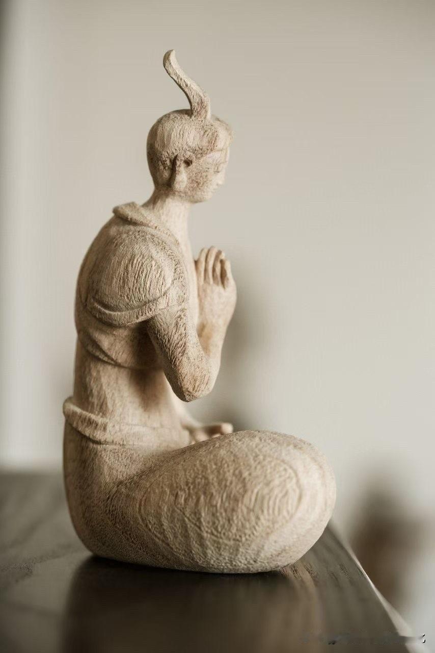 有些造像,不靠繁华,只靠一口气。 香樟木一木成形,肌理朴拙而温和,带着木本的呼吸感。没有多余雕饰,反而更见真实——像从一段安静的时光里走出来。 盘膝而坐,双手合十,眼帘低垂。不是在“表现”,更像在“安住”。衣褶不求细密,却顺势自然,线条简净,留白处反而更有意味。 这样的作品,看久了,会慢慢把人带慢。 你会被这种极简的“空”, 还是精雕细刻的“满”,更打动?