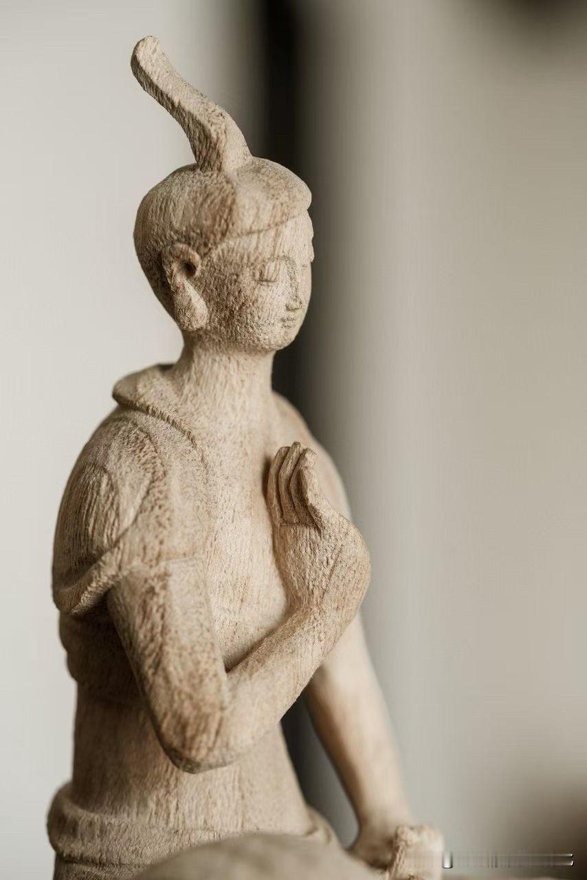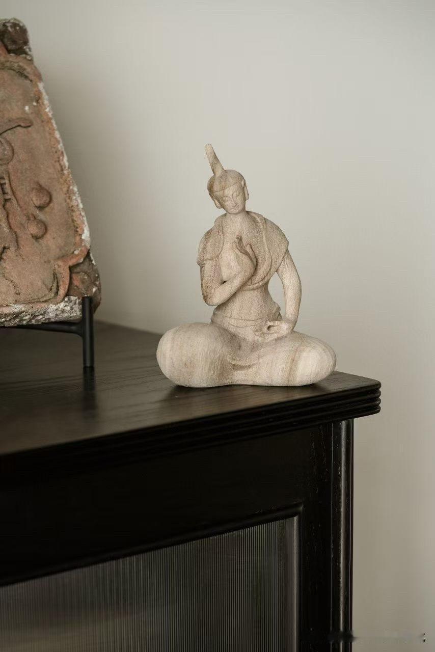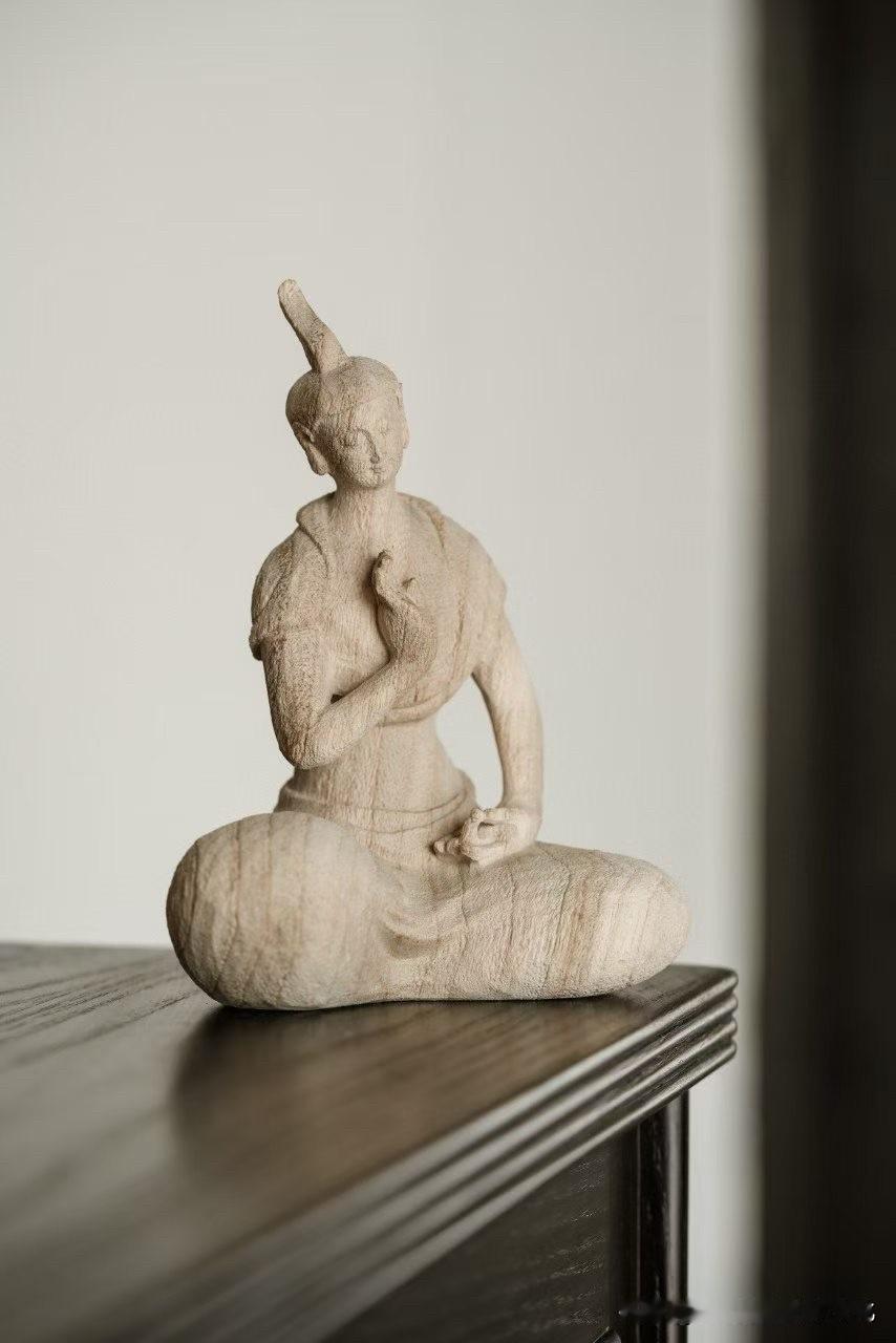 有些造像,不靠繁华,只靠一口气。 香樟木一木成形,肌理朴拙而温和,带着木本的呼吸感。没有多余雕饰,反而更见真实——像从一段安静的时光里走出来。 盘膝而坐,双手合十,眼帘低垂。不是在“表现”,更像在“安住”。衣褶不求细密,却顺势自然,线条简净,留白处反而更有意味。 这样的作品,看久了,会慢慢把人带慢。 你会被这种极简的“空”, 还是精雕细刻的“满”,更打动?