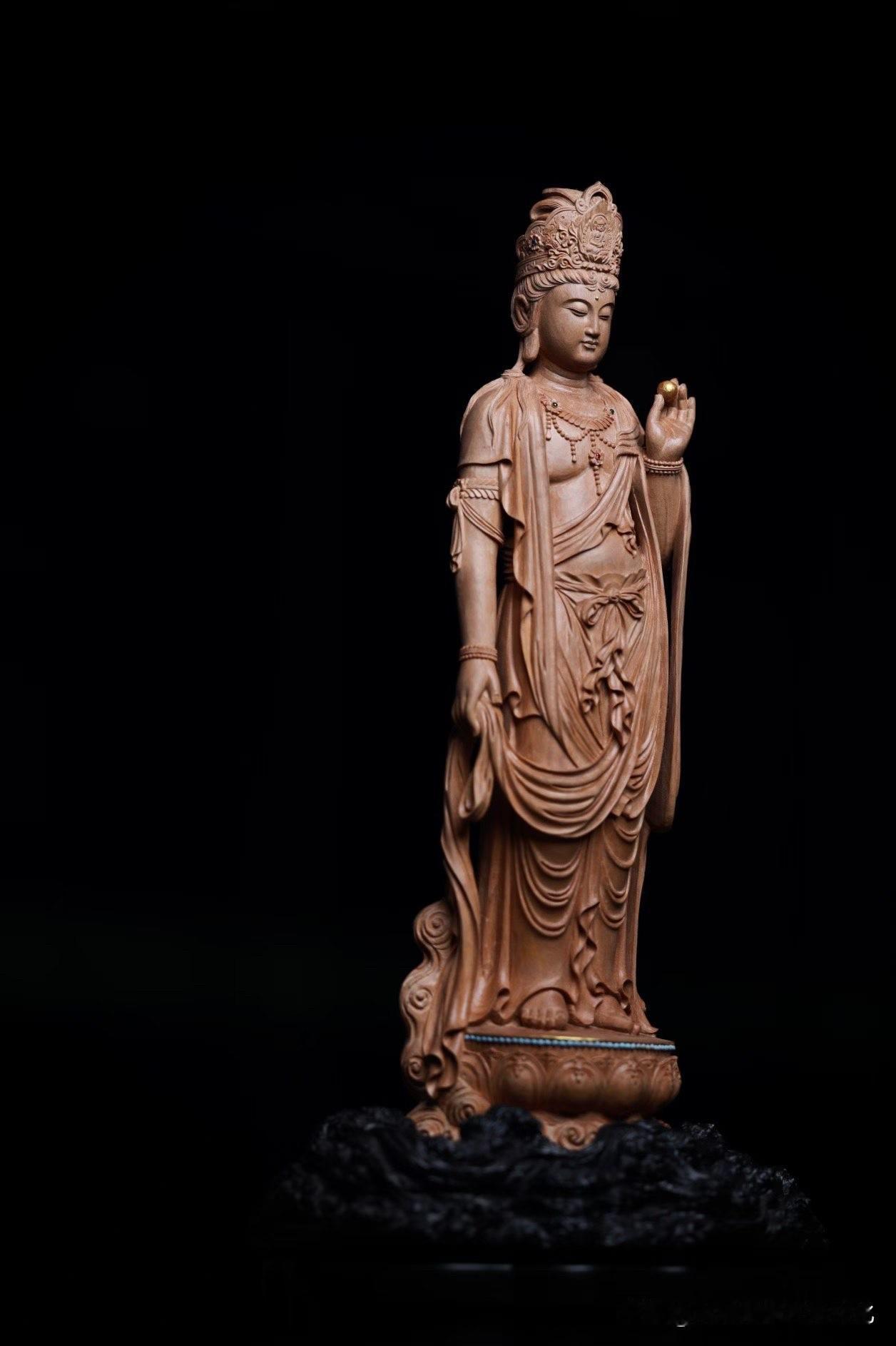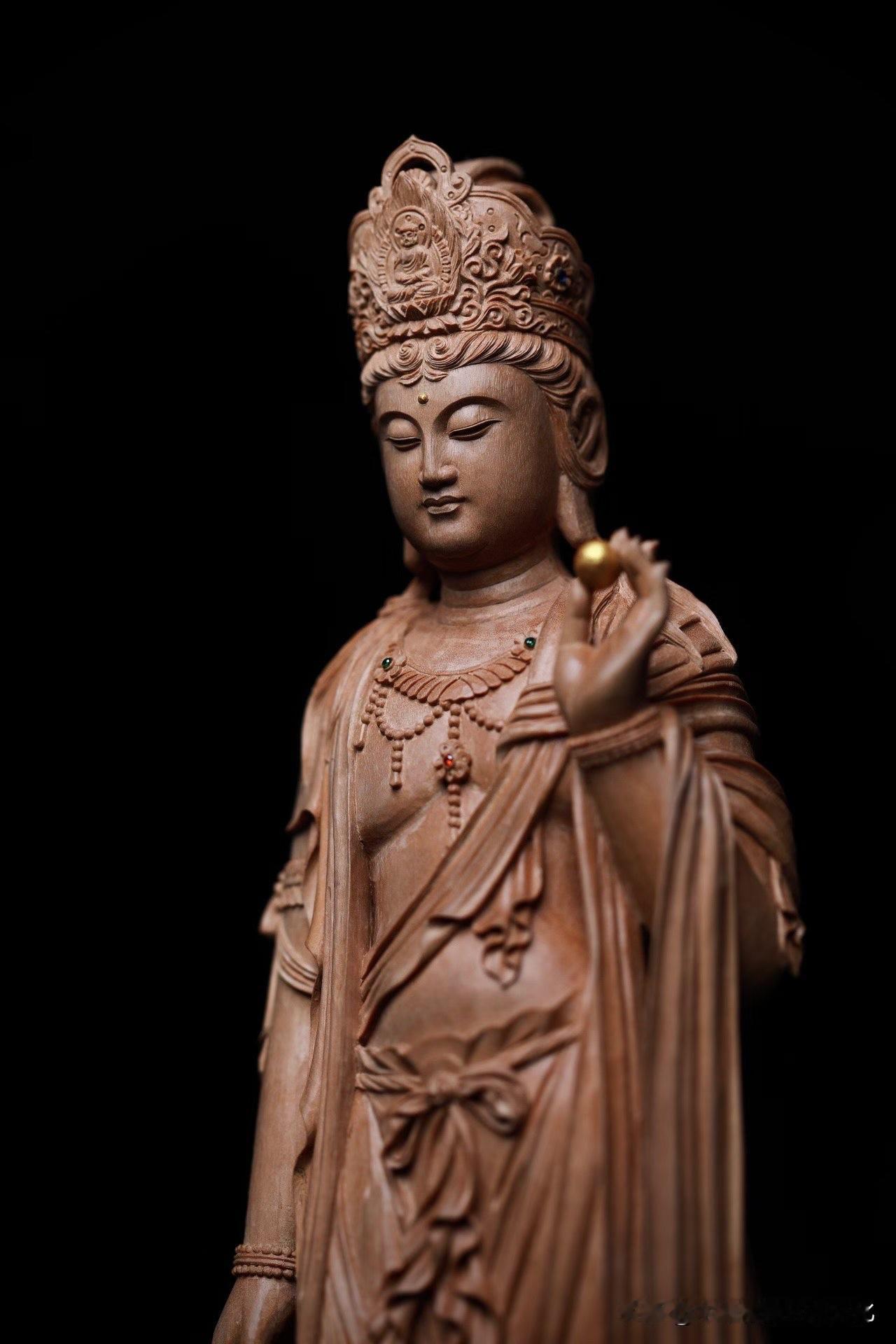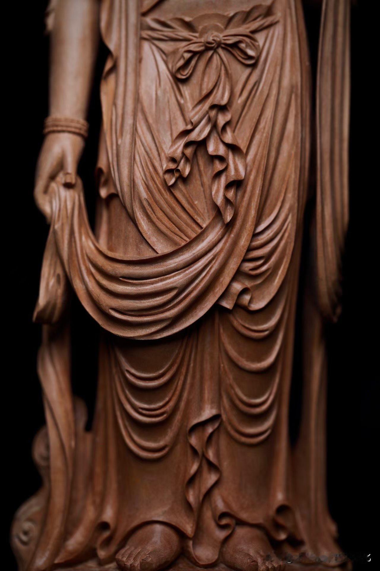 有些观音,不在“显”,而在“收”。 老山檀黑肉沉水老料,色沉而润,光泽内敛,像把时间慢慢藏进木里。置于案头,不言香,却有气息在空气里轻轻铺开。 观音垂眸,手持念珠,神情不悲不喜,却自有安定。衣纹层层垂落,线条起伏有度,刀不炫,却处处见分寸。那种克制里的精致,反而更耐看。 看久了,会发现它不是在“被观看”,而是在“陪伴”。 你会把这样的观音,放在最显眼的地方, 还是留给一个只属于自己的角落?檀木老山檀香 檀山老山檀香 料老山檀香 老山檀挂饰 檀香老山皮 檀阴沉手串 沉水级黑油沉香