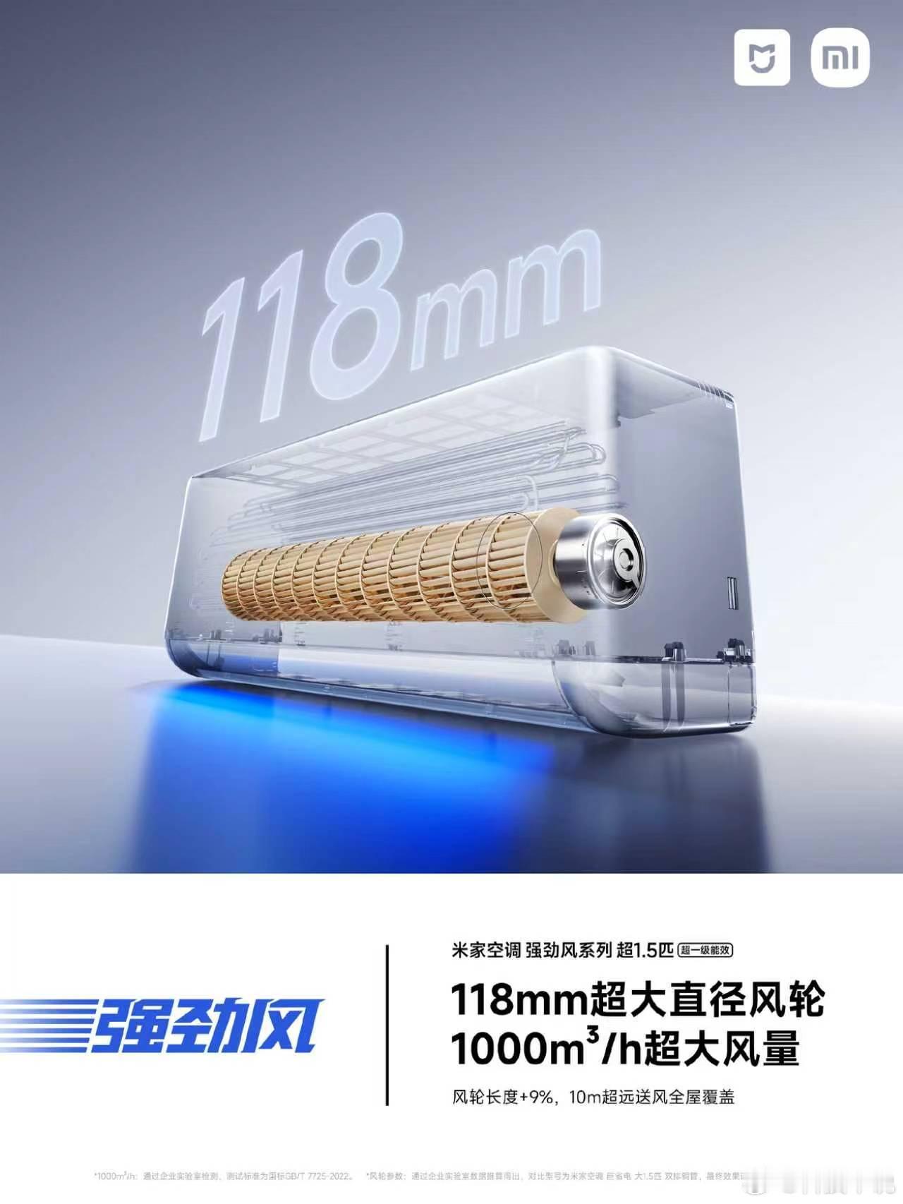 米家空调强劲风米家空调强劲风Pro超1.5匹超一级能效,小米性能旗舰空调,3000元档全能优选。搭载13cc超大排量双缸压缩机、大双排纯铜管与118mm大风轮,1000m³/h超大风量,161s全屋快速冷暖,实力媲美2匹。首创冷媒动态调节,15s速冷30s速热,高频运行冷暖再升级。APF高达6.30,AI节能率47%,纯热泵制热更省电不干燥,控温精准波动小。