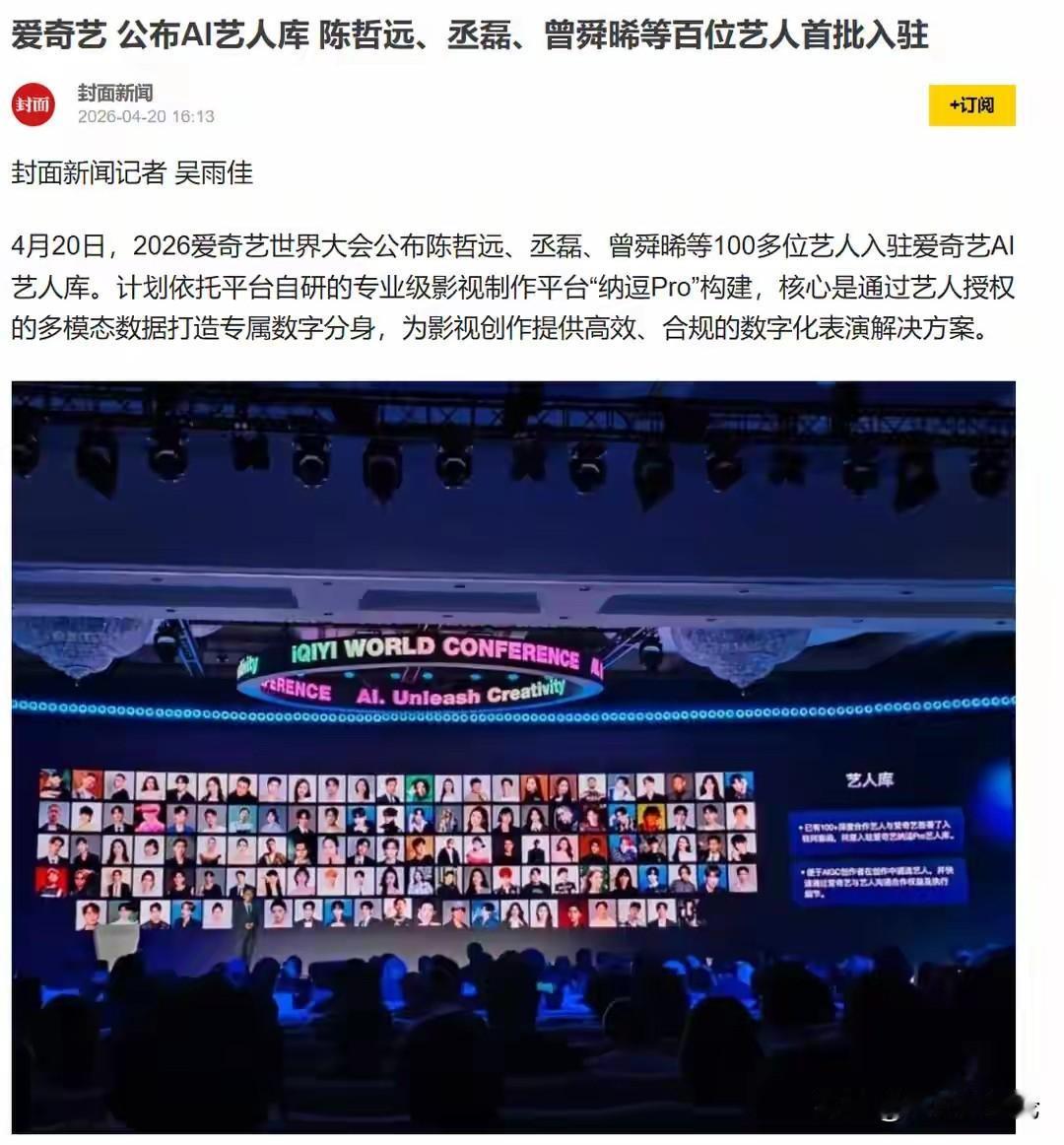 标题 真人拍戏要成“非遗”?爱奇艺签117位AI艺人,惹众怒了! 当爱奇艺高调宣布签约117位演员入AI影视艺人库,还放话“未来真人实拍可能成非遗”,被大家质疑为吃相太难看了。 这波操作看似“科技感拉满”:AI能批量生成角色,节省成本,甚至“永不下线”。可细想之下,戳心的是签约演员的无奈:不签?后面有的是人排队。这哪里是“拥抱新技术”,更像被推着走上一条“被替代”的快车道。有人说这是影视圈的“降本神器”,可别忘了,观众爱的从来不是完美的AI脸,而是活生生的人在故事里的挣扎与闪光。 看真实的假人,演员多么悲凉!